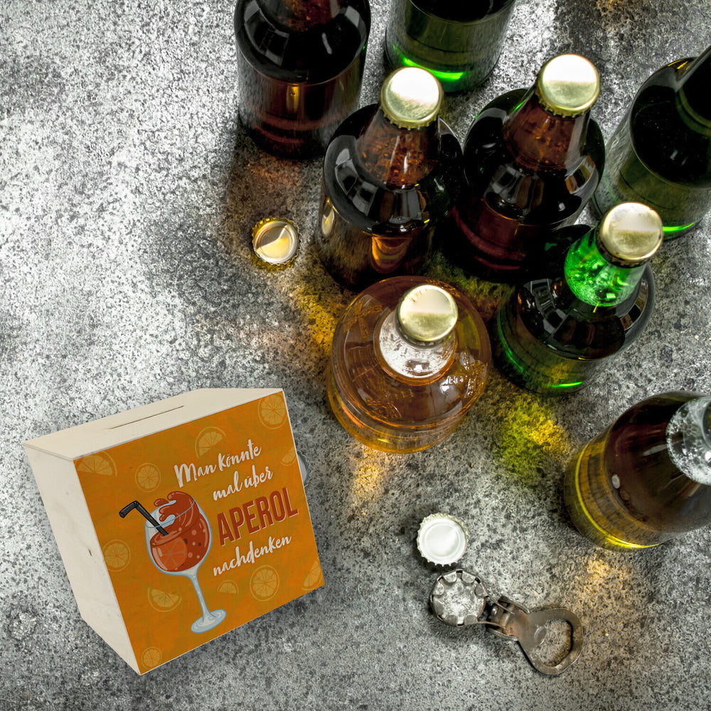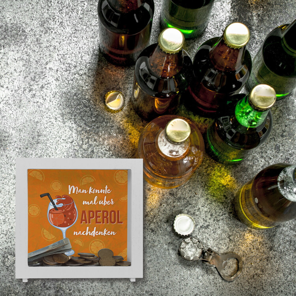 - 1x Cocktail Spardose mit Spruch Man könnte mal über Aperol nachdenken in der gewählten Ausführung