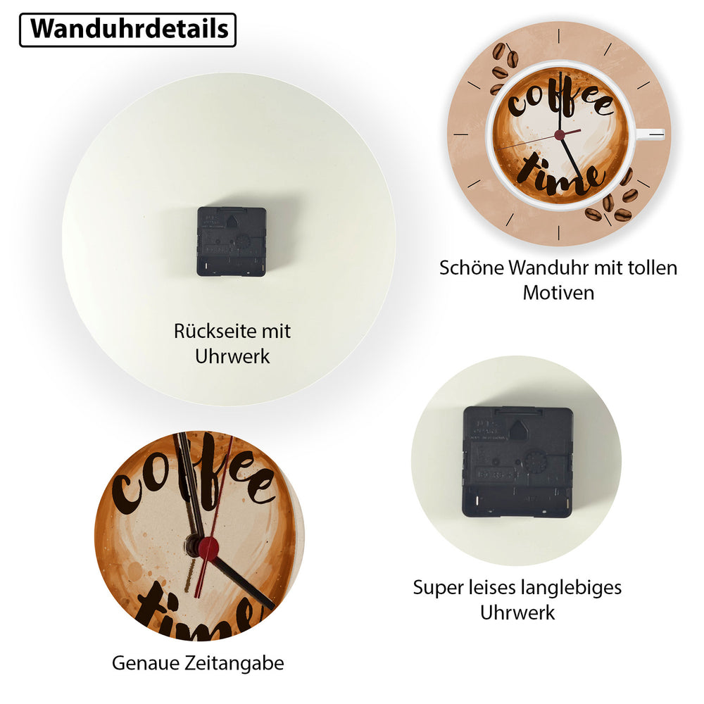 • Kaffee ist für viele aus dem Alltag nicht mehr wegzudenken. Mit dieser schönen Uhr mit Kaffeemotiv bekommst du eine besondere Dekoration für deine Küche oder ein Kaffee. Mach die nächste Pause zur Kaffeepause.