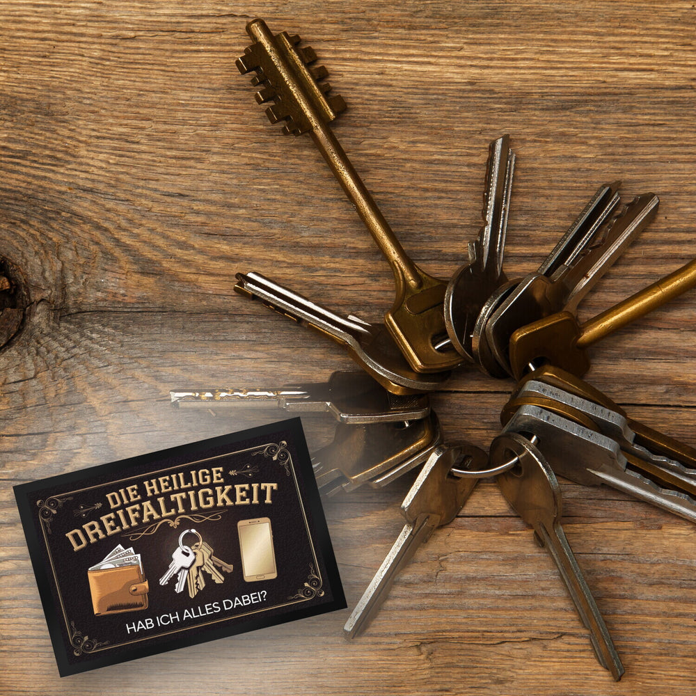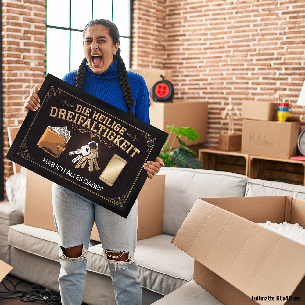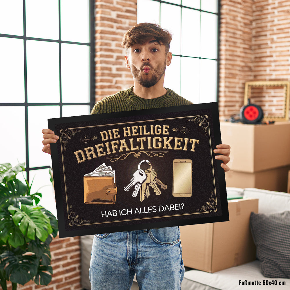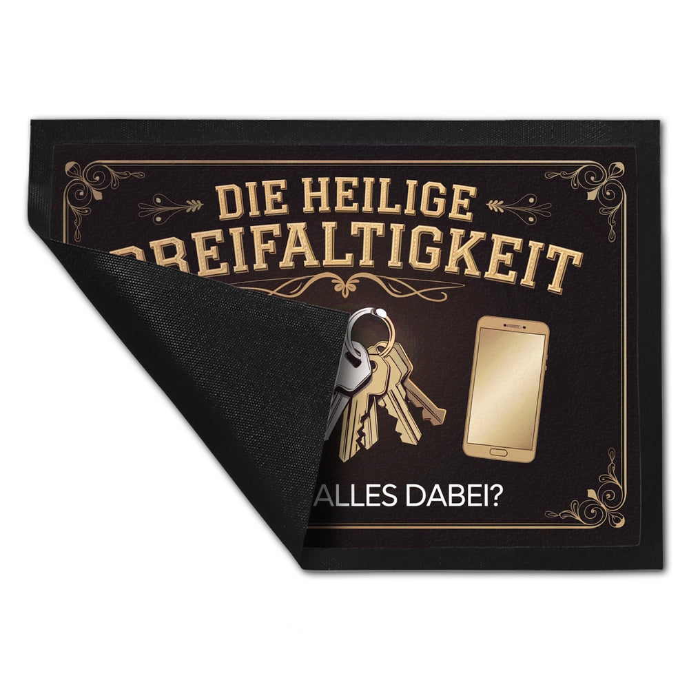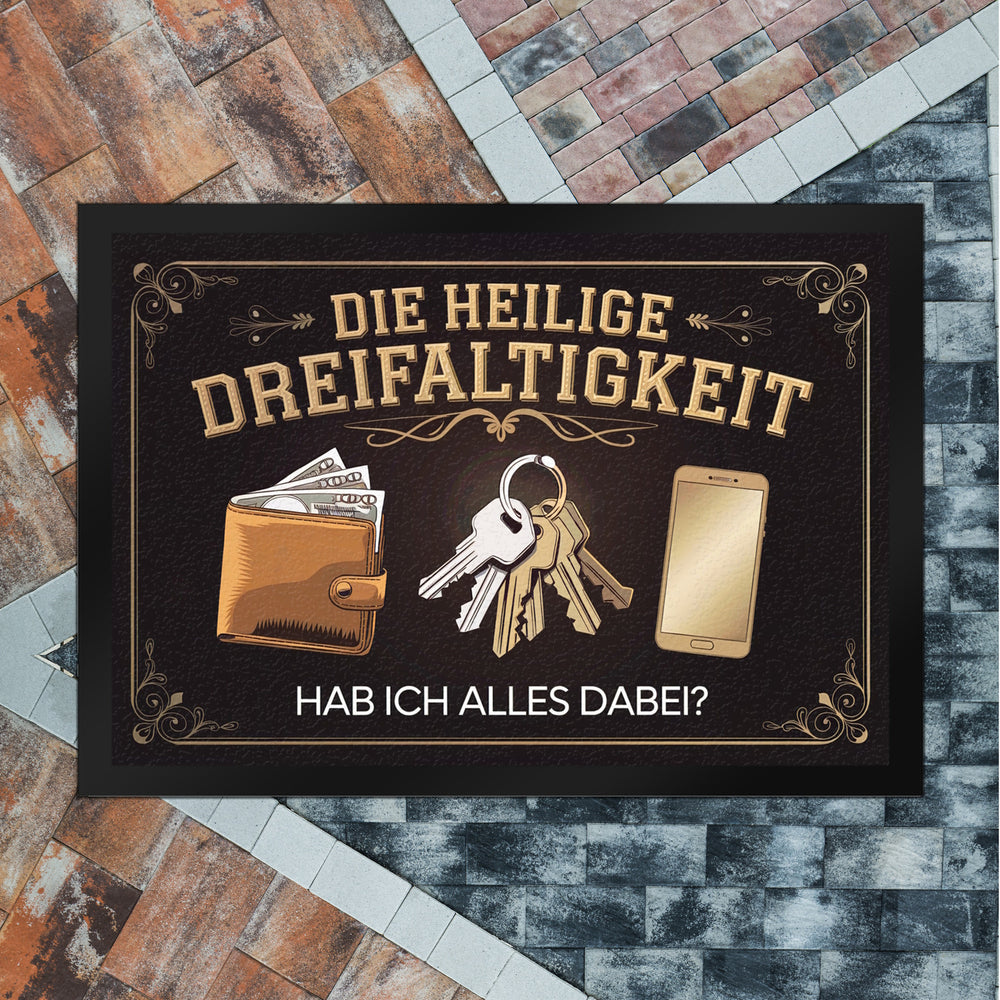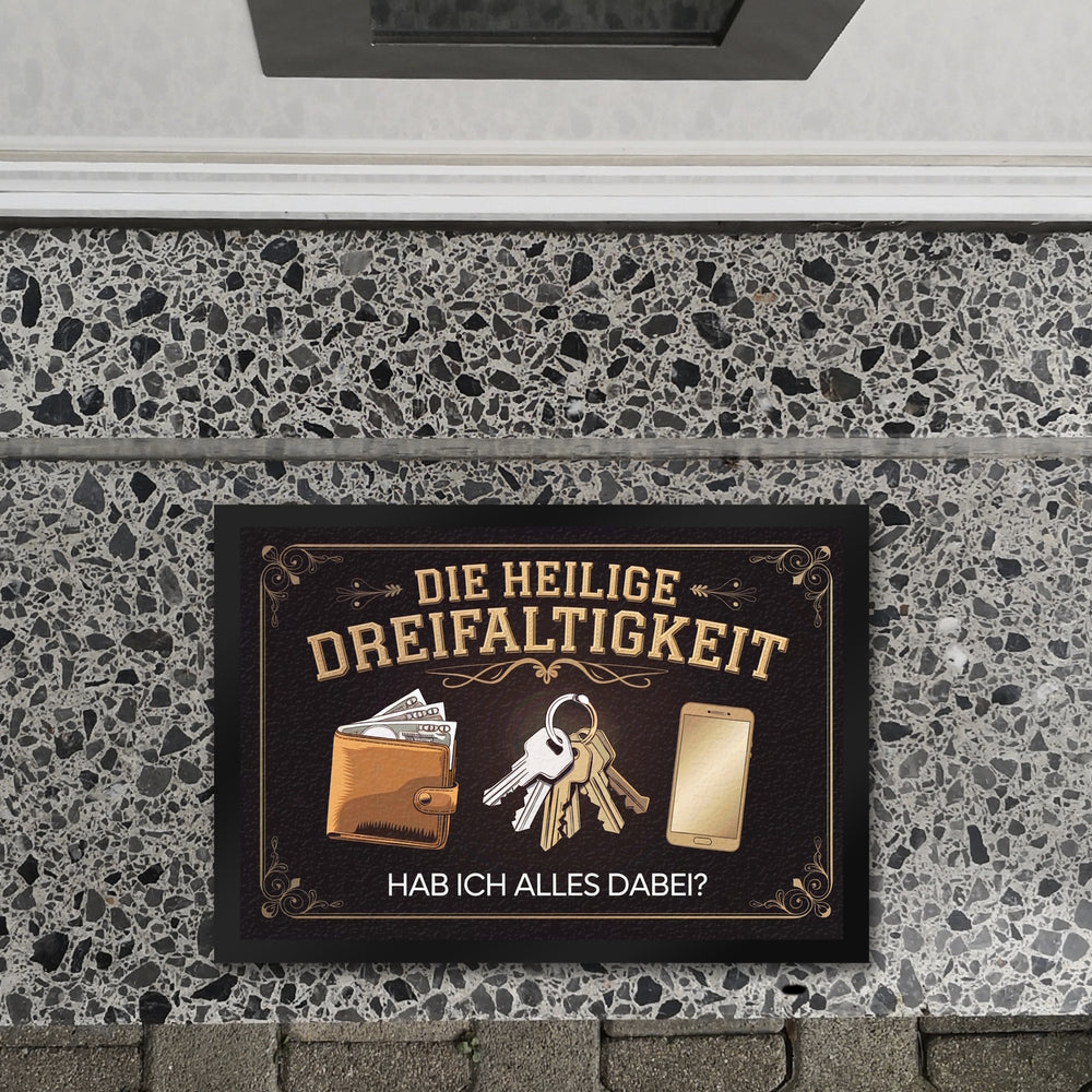 Die heilige Dreifaltigkeit - Reminder Fußmatte in 35x50 cm für die wichtigsten Utensilien
