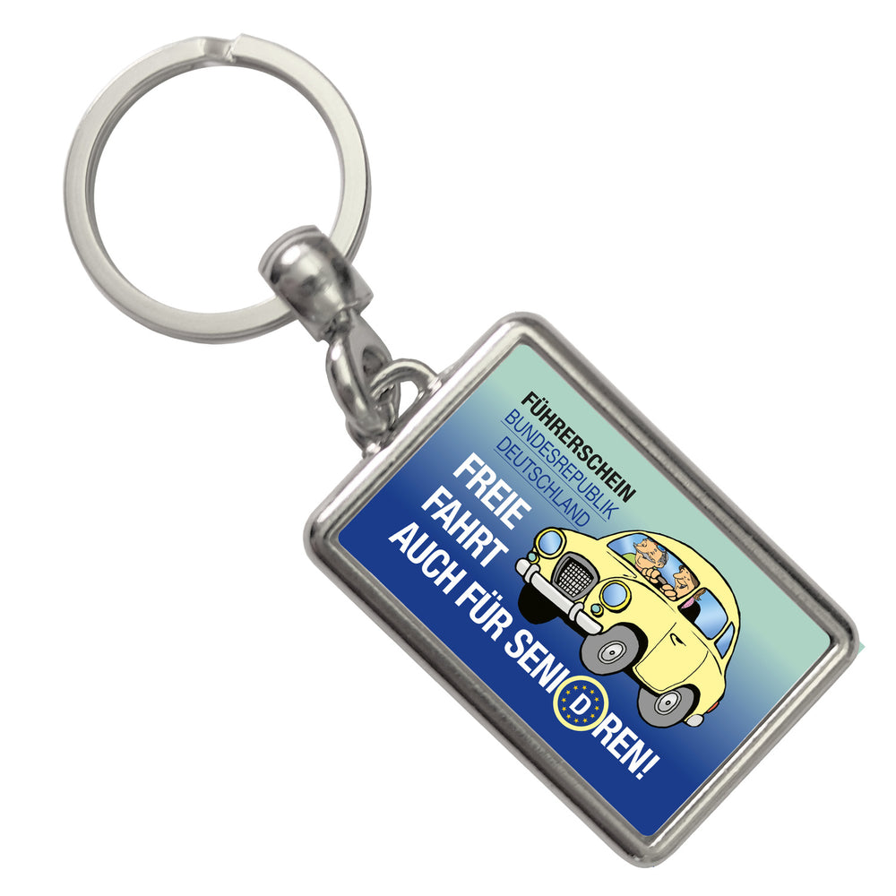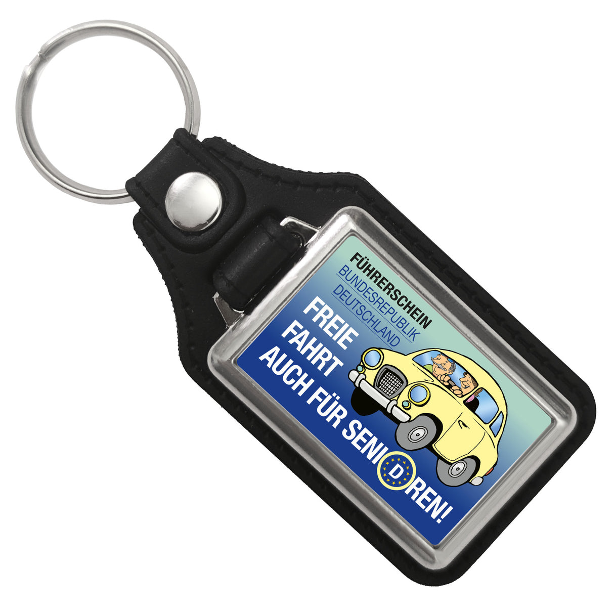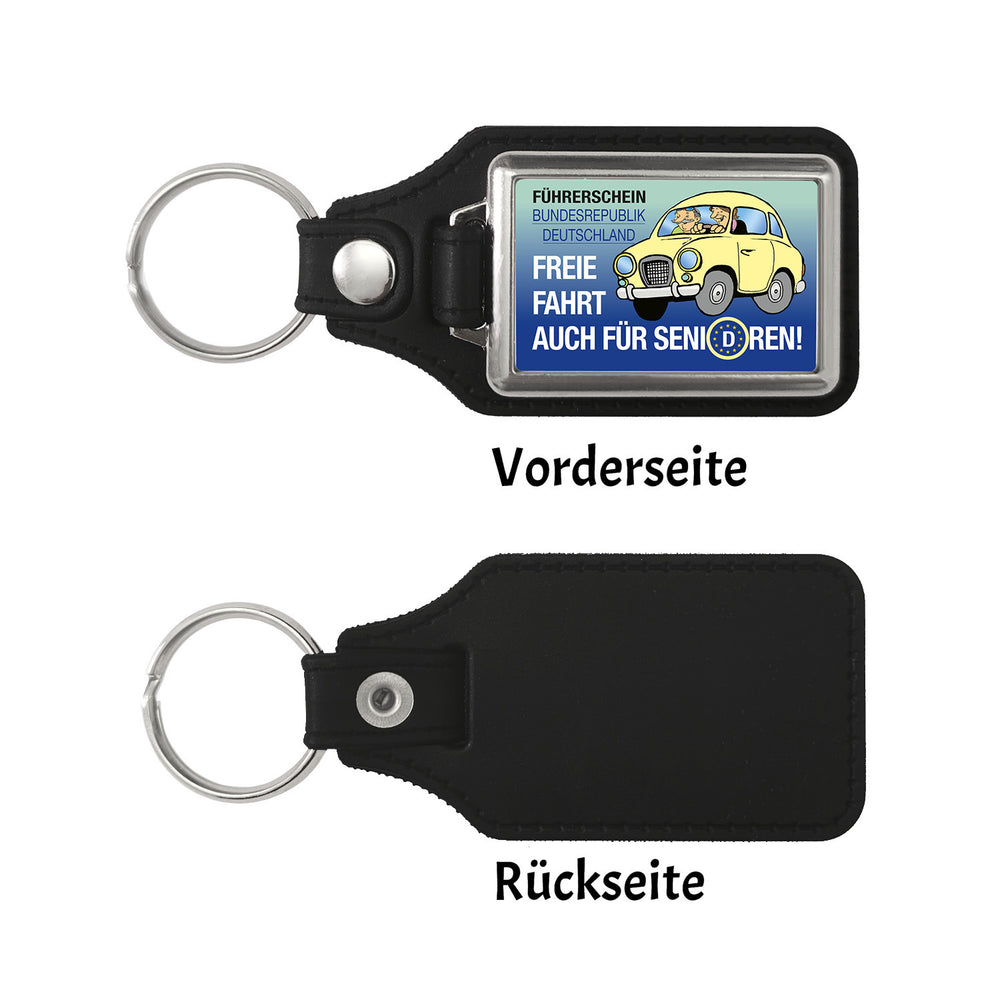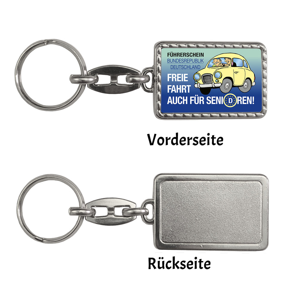 - 1x Freie Fahrt auch für Senioren Schlüsselanhänger mit Oldtimer Motiv in der gewählten Ausführung