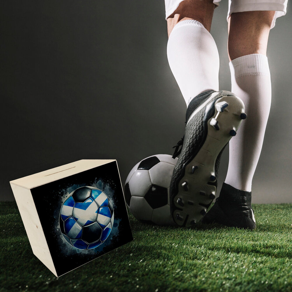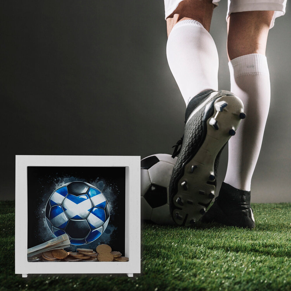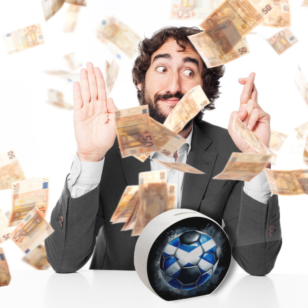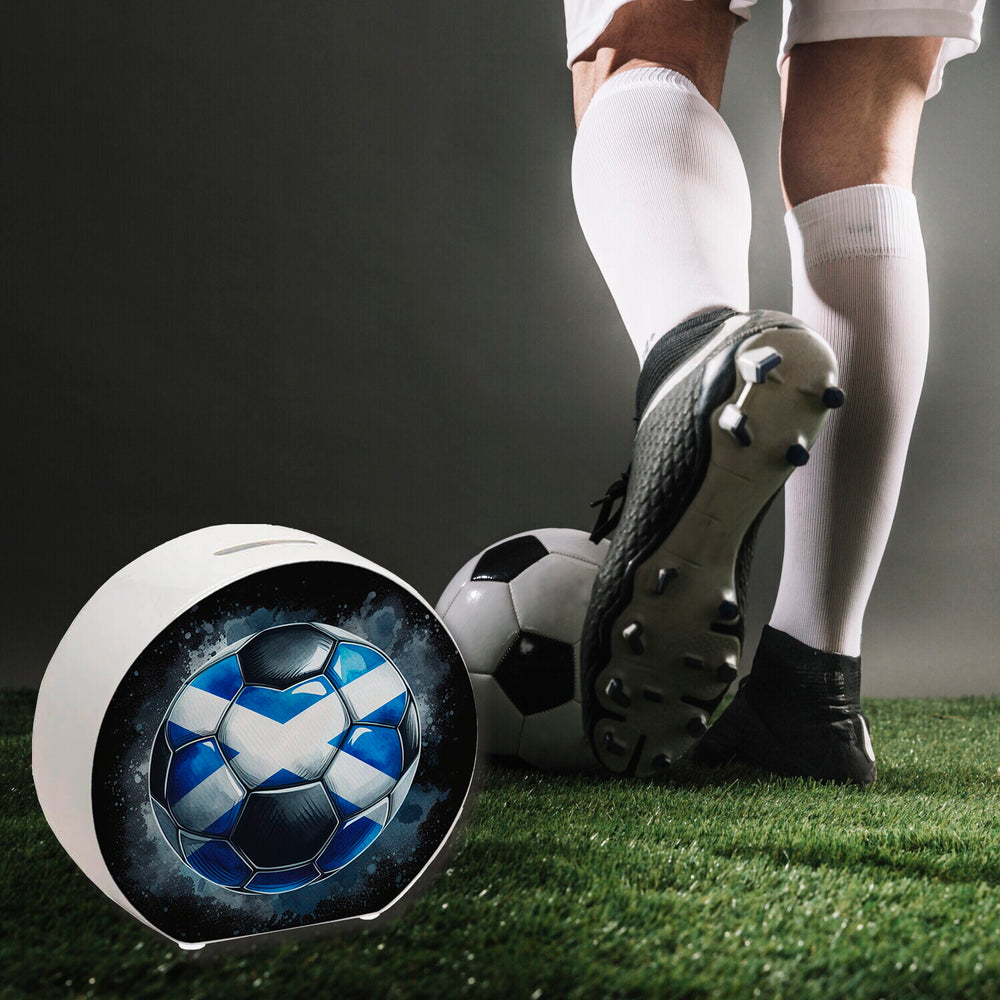 • Träumst du von Schottland und Fußball? Diese coole Spardose in Form eines Fußballs bringt die schottische Flagge direkt zu dir! Mit ihrem blau-weißen Kreuzdesign ist sie ideal für EM 2024 Fans. Sparen war noch nie so stylisch!