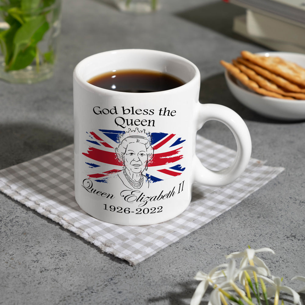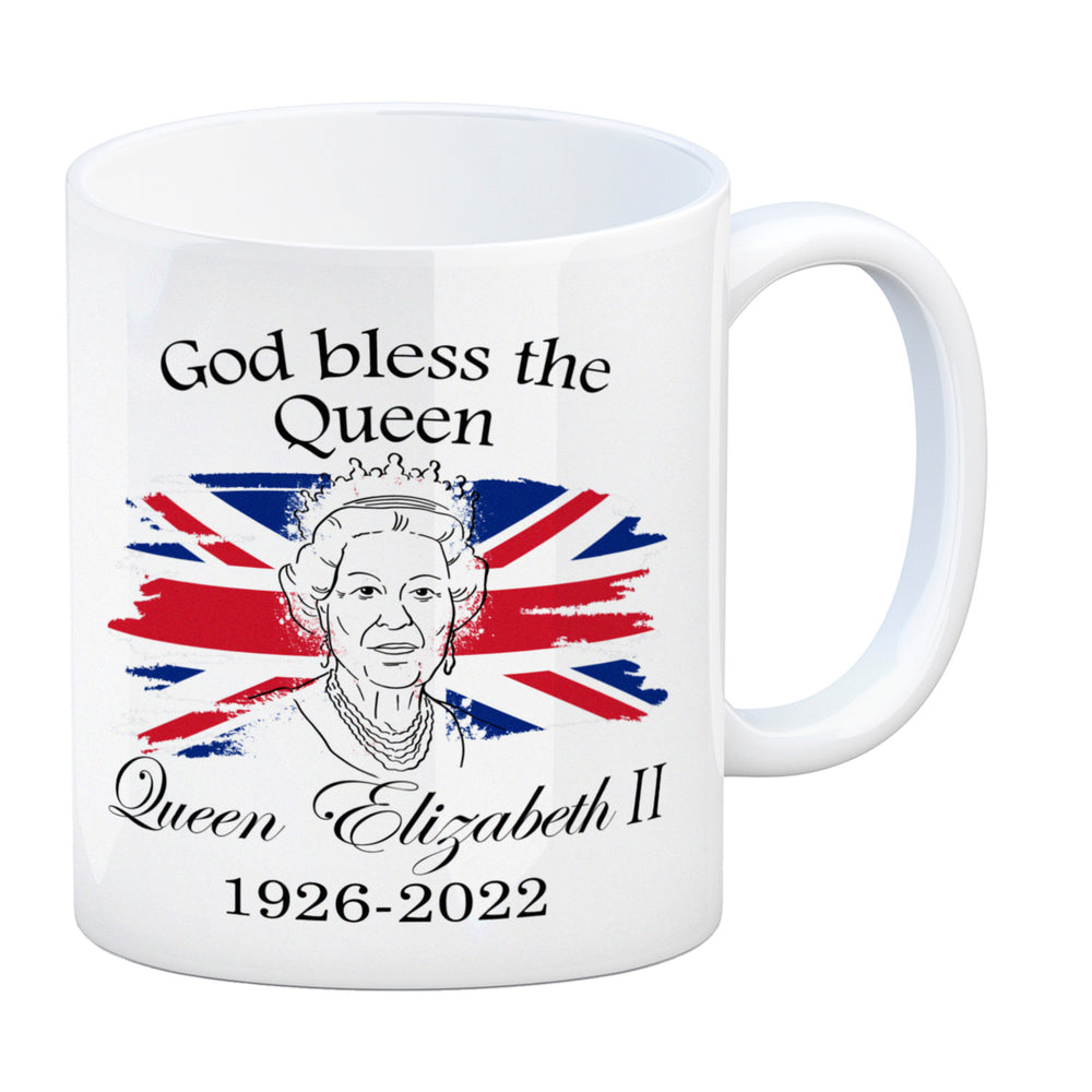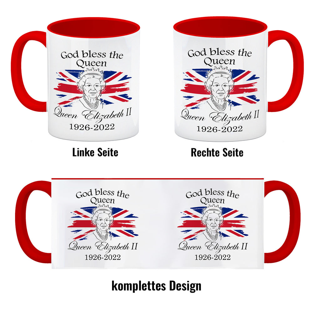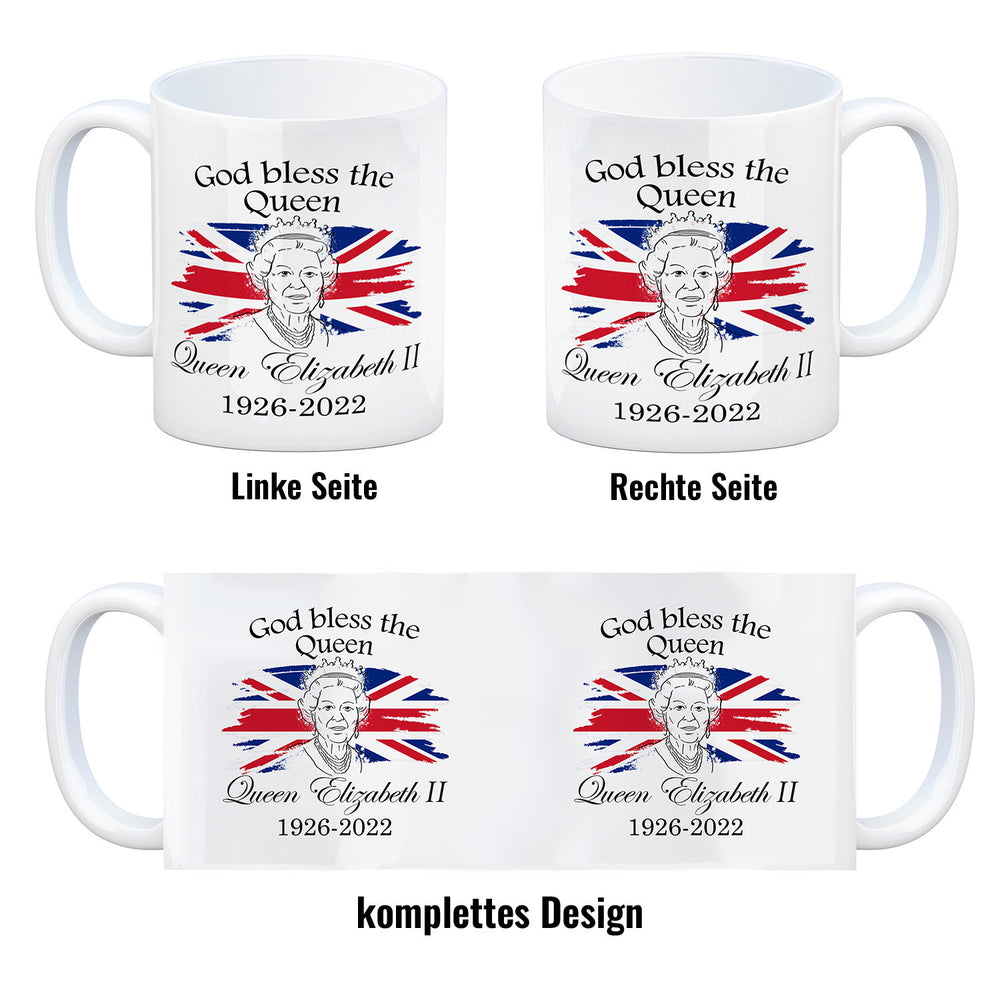 • 1x God bless the Queen Kaffeebecher in der gewählten Ausführung