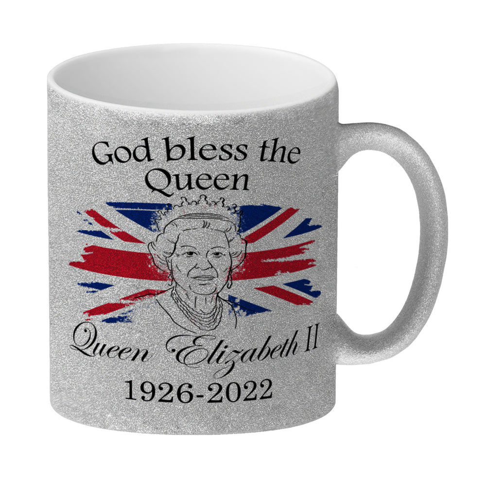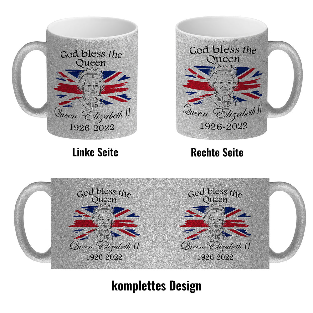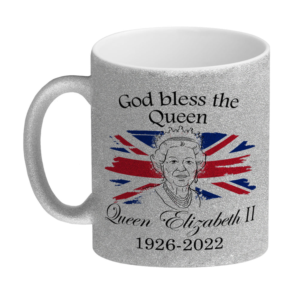 Der God bless the Queen Kaffeebecher ist eine schöne Geschenkidee, um Queen Elizabeth in Erinnerung zu behalten. Erhältlich in verschiedenen Varianten - von der weißen Standardtasse bis hin zur exklusiven Silberedition mit Glitzereffekt. Jede Tasse wird sorgfältig in Handarbeit hergestellt und ist ein Zeichen des Respekts für die lange Herrschaft der Majestät Queen Elizabeth II. Dieser Kaffeebecher ist die perfekte Geschenkidee für alle Fans der Queen - ob Freunde, Großeltern oder Kollegen. Mit dem God bless the Queen Kaffeebecher kann man seine Liebe und Wertschätzung zur Königin deutlich ausdrücken!