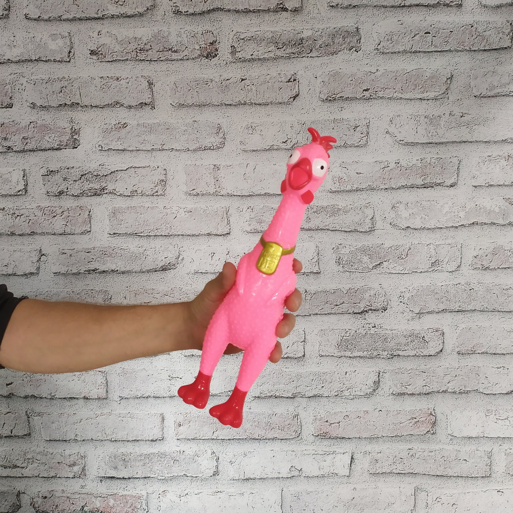 - Das Spielzeug Huhn gibt einen lauten Schrei von sich sobald es gedrückt wird.