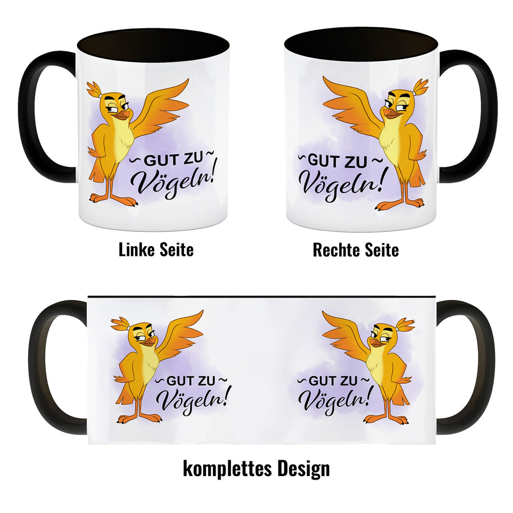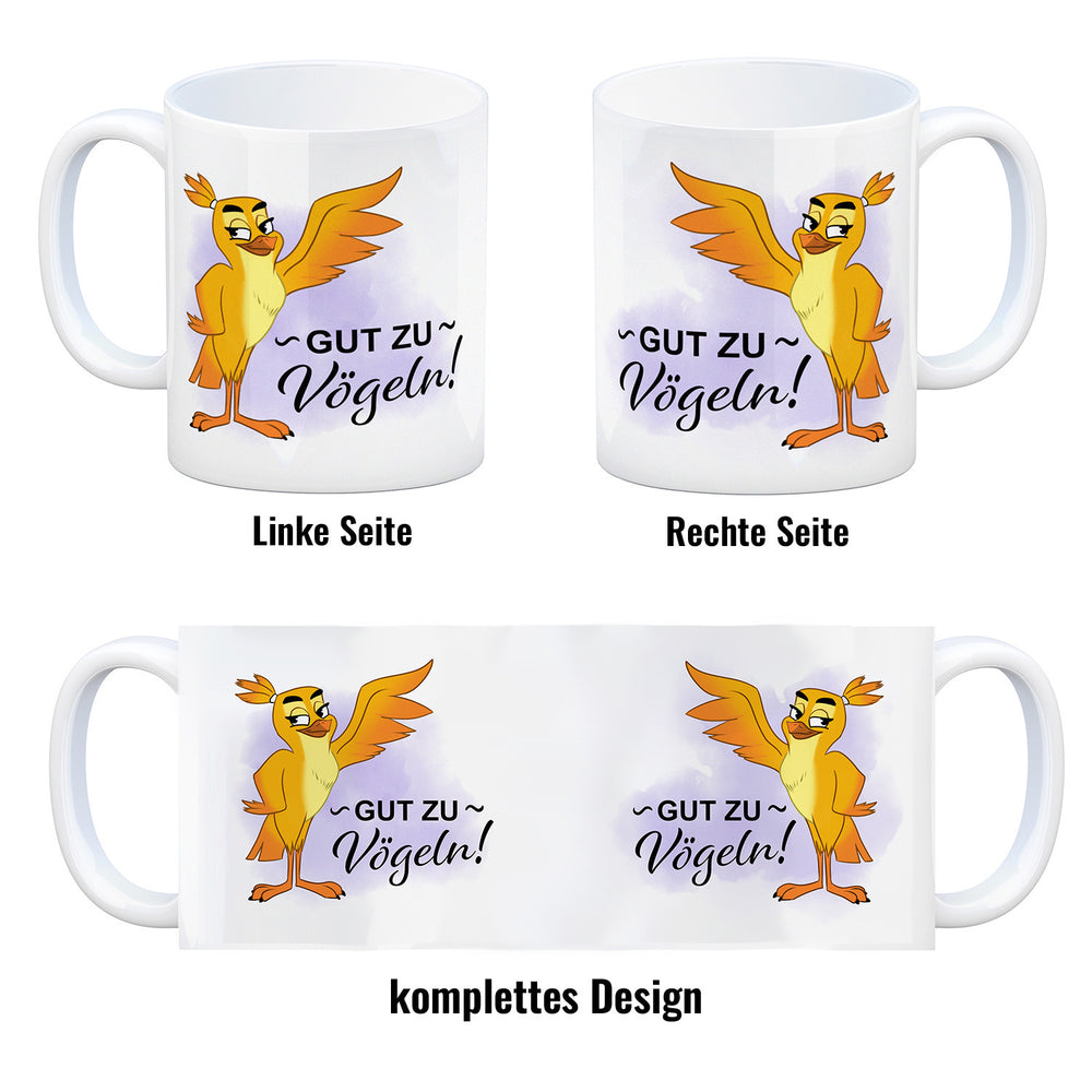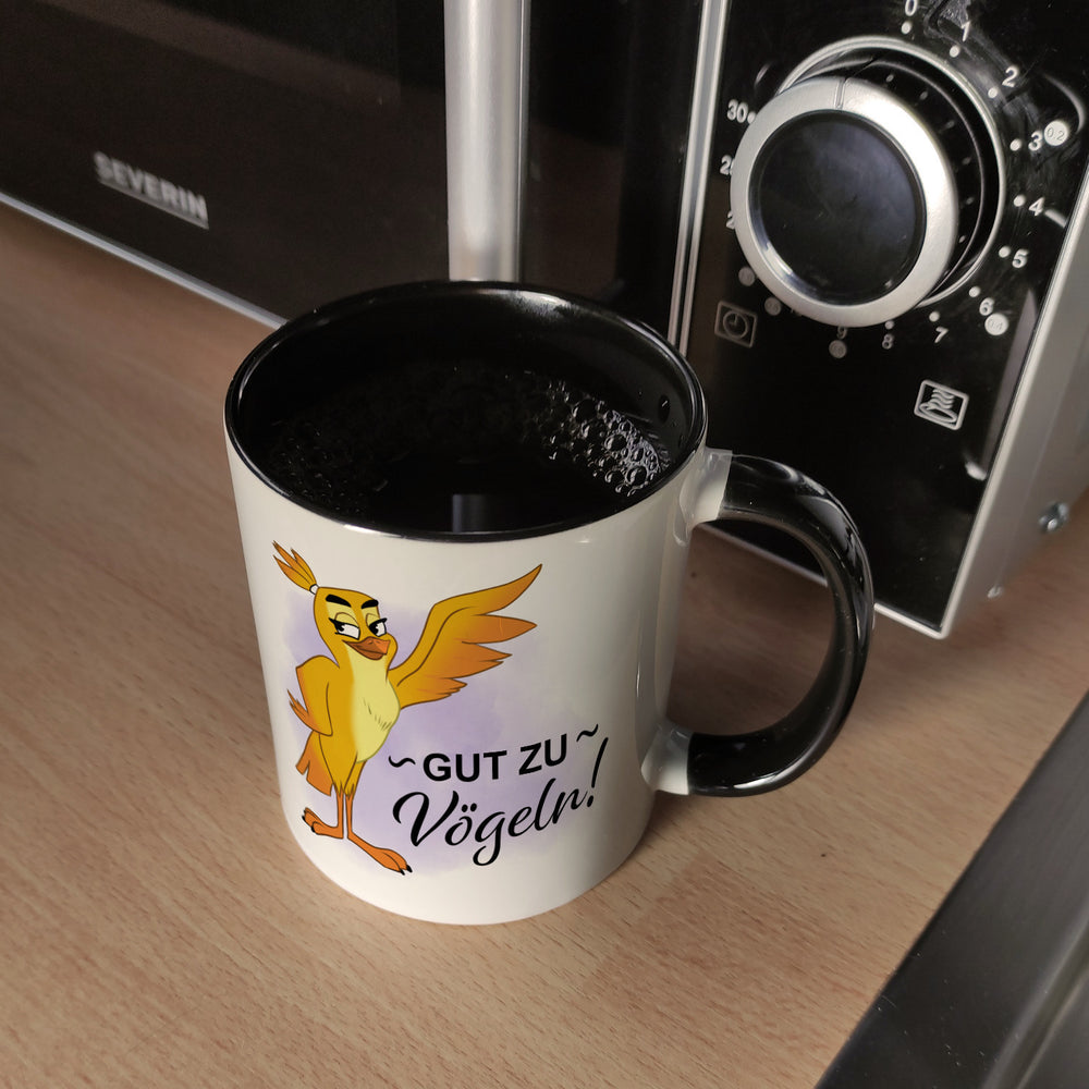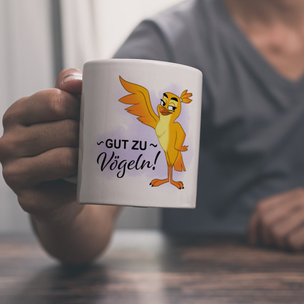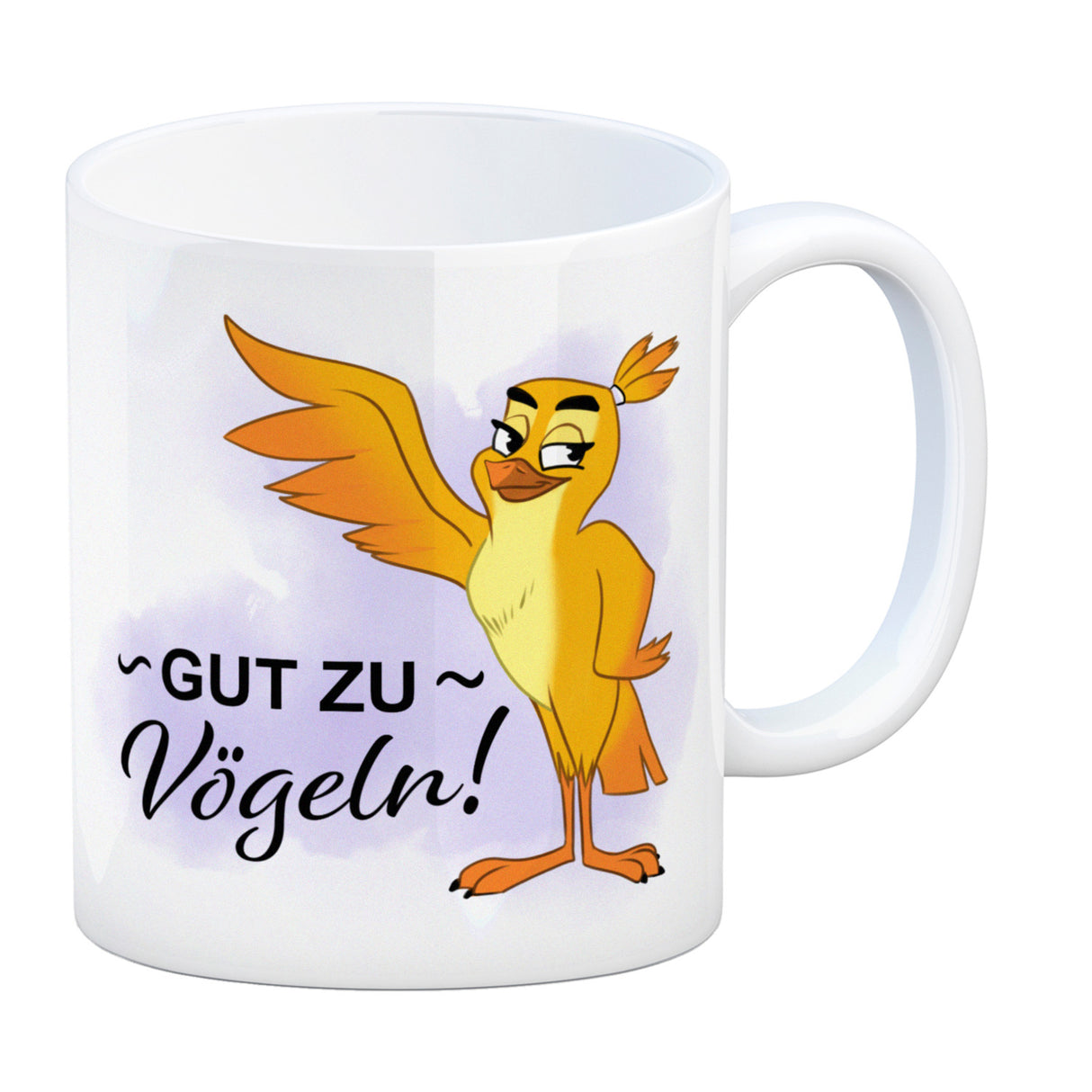 Gut zu Vögeln Kaffeebecher mit lustigem Vögelchen und Spruch