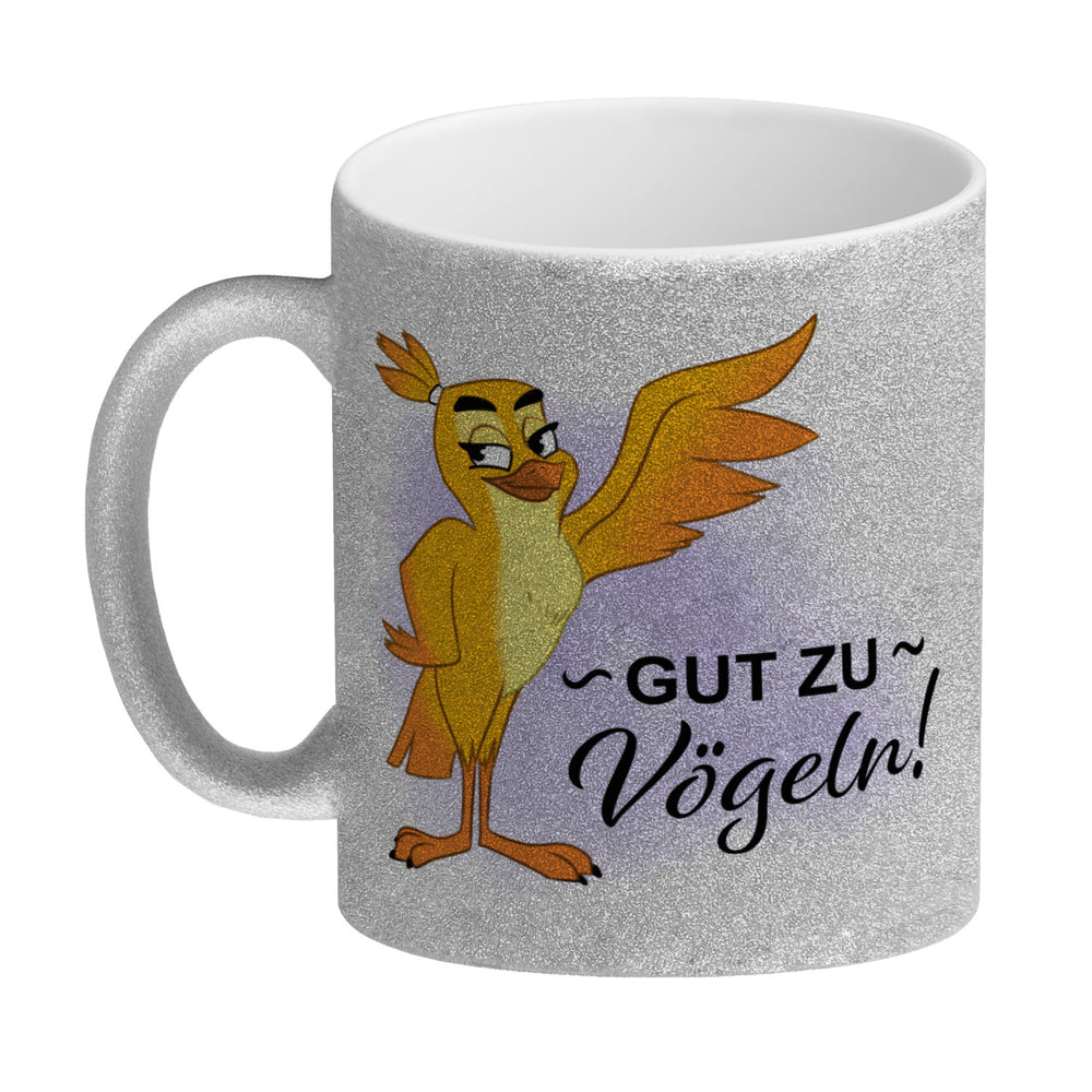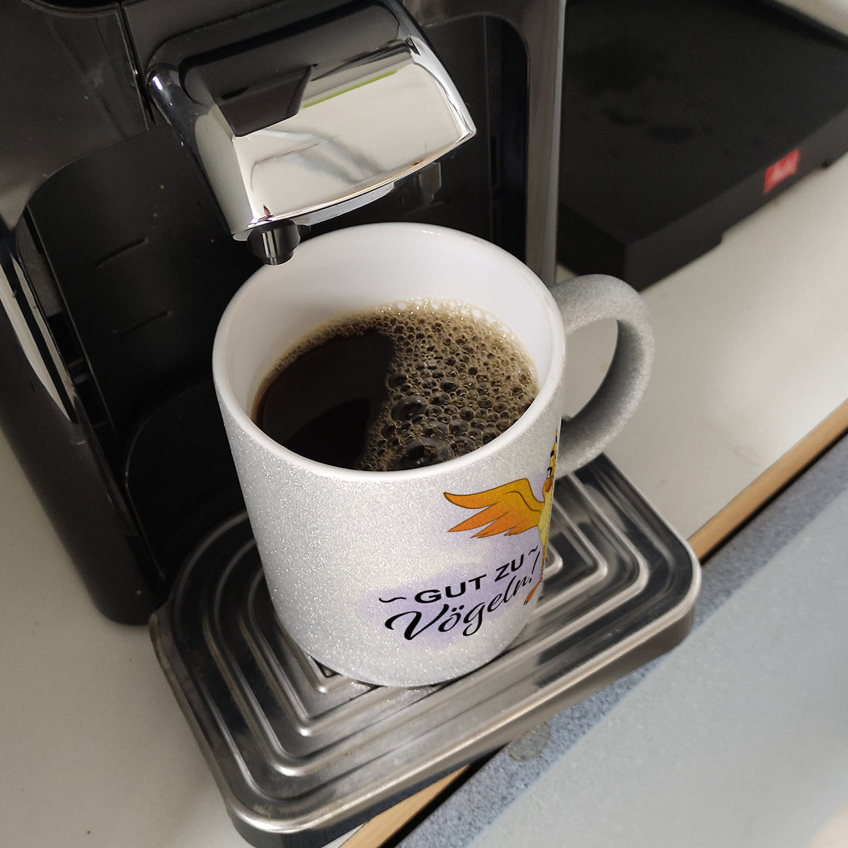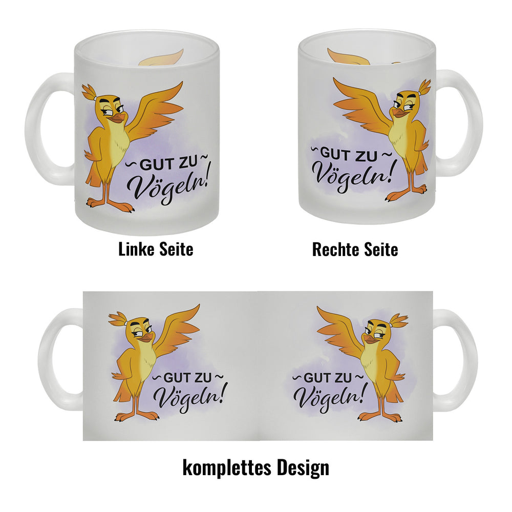 - 1x Gut zu Vögeln Kaffeebecher mit lustigem Vögelchen und Spruch in der gewählten Ausführung
