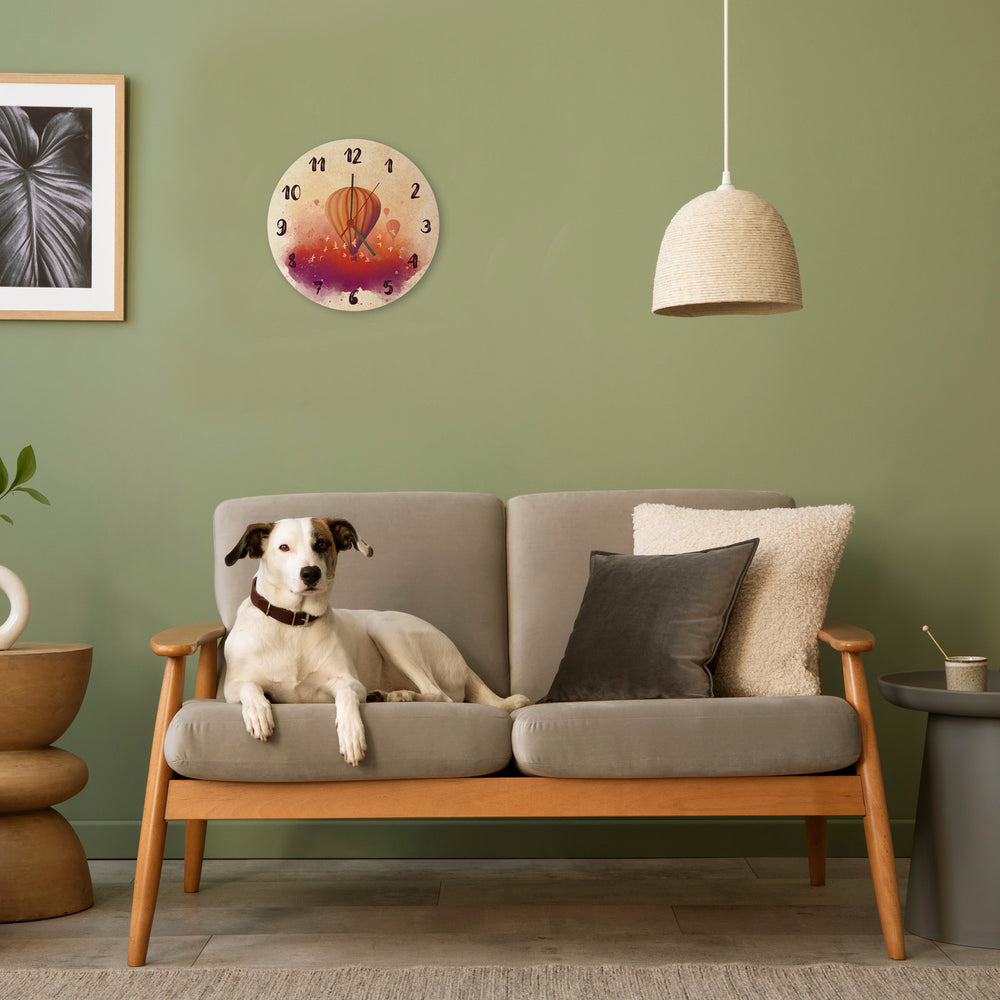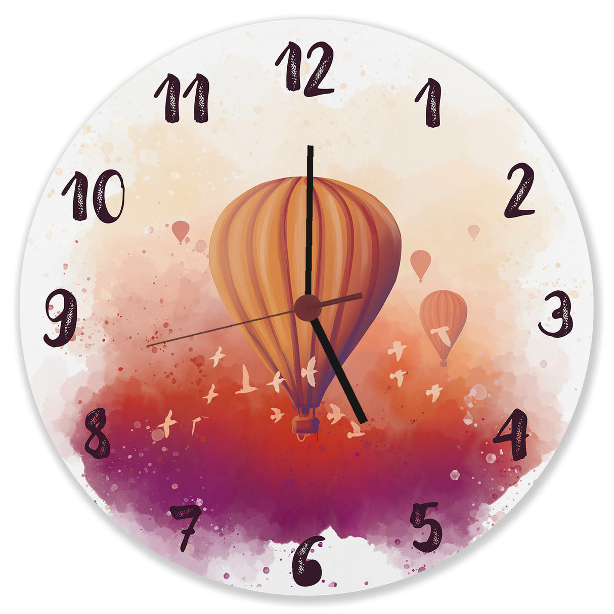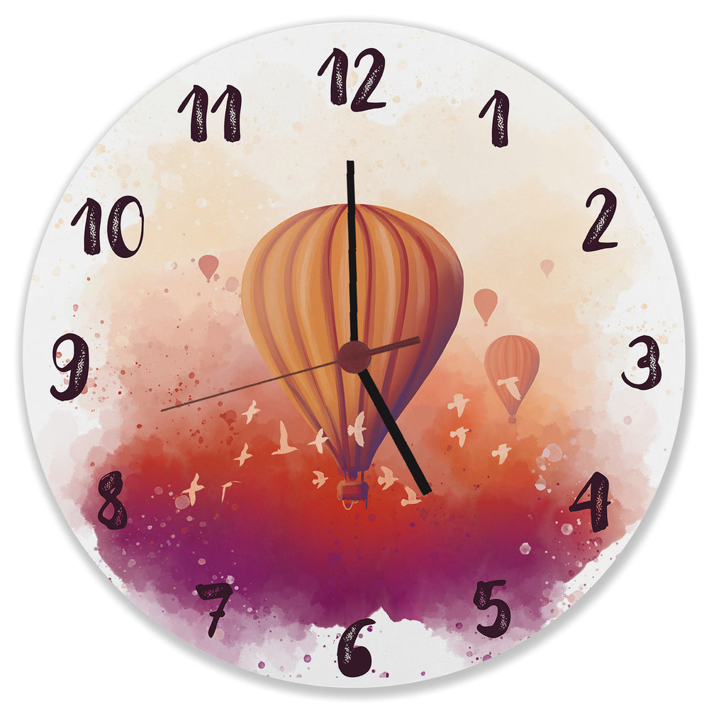 Heißluftballon in Wasserfarbenoptik Wanduhr
