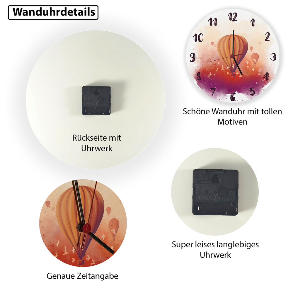 • 1x Heißluftballon in Wasserfarbenoptik Wanduhr in der gewählten Variante