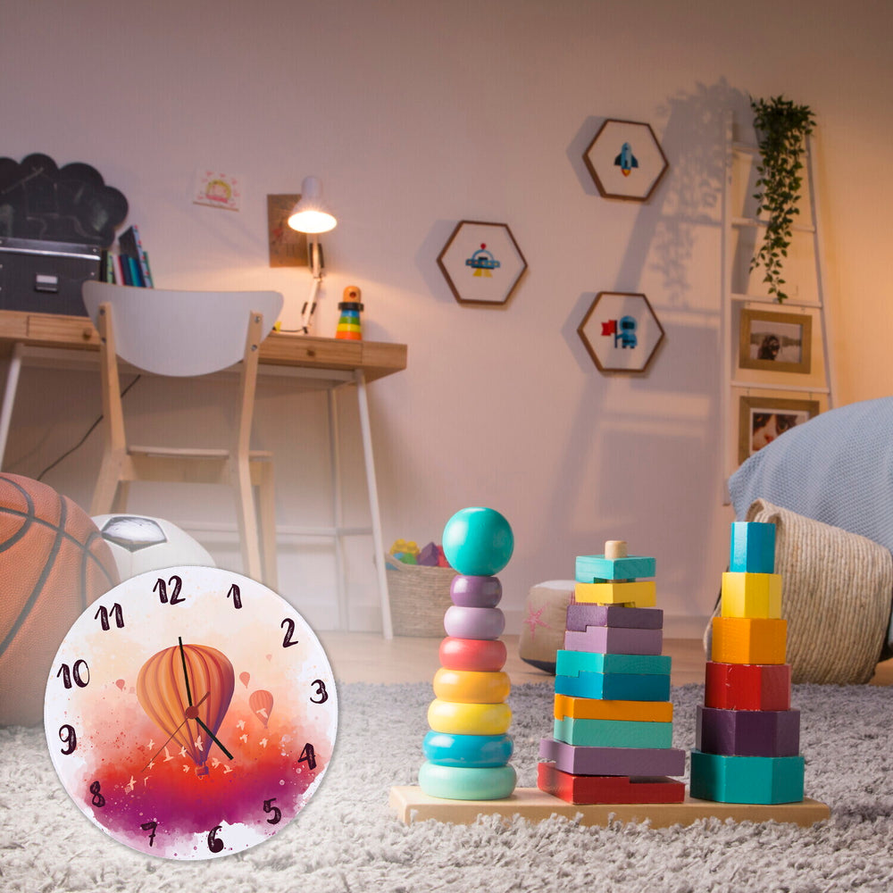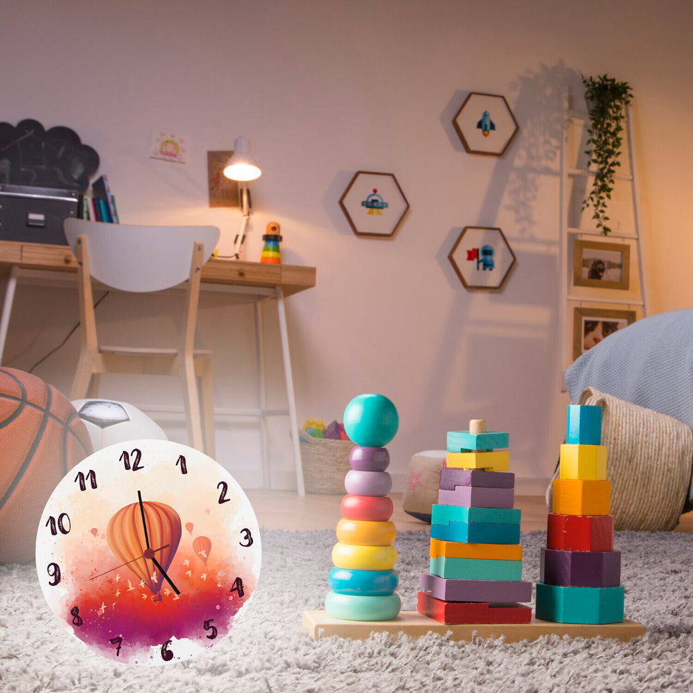 • Du suchst nach einer Wanduhr mit einem schönen Motiv für das Kinderzimmer? Dann ist diese besondere Uhr mit Heißluftballon wie für dich gemacht. Das einzigartige Motiv und die hochwertige Verarbeitung hebt diese Uhr von anderen Wanduhren ab.