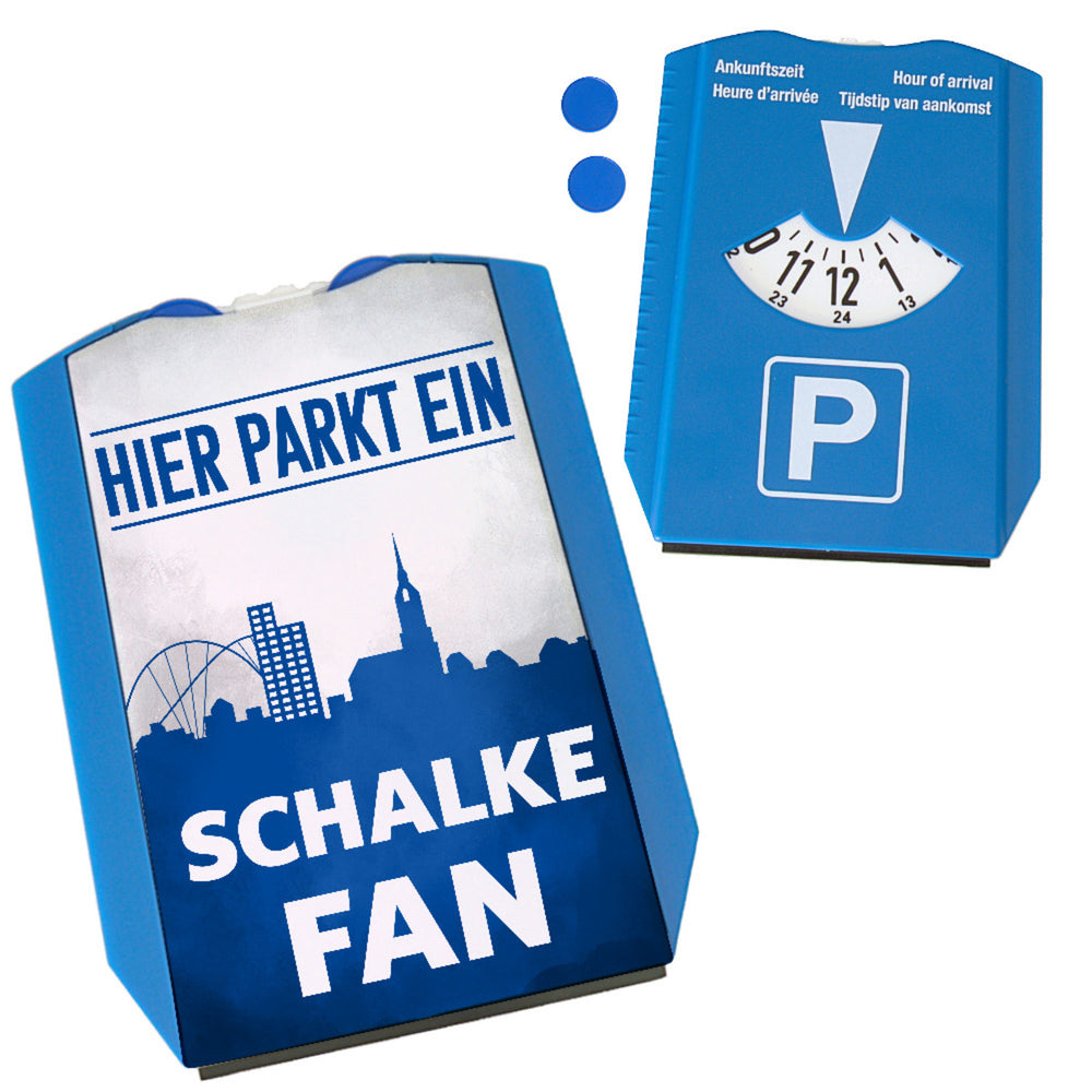 - Lieferumfang: 1x Hier parkt ein Schalke Fan Parkscheibe in Vereinsfarben