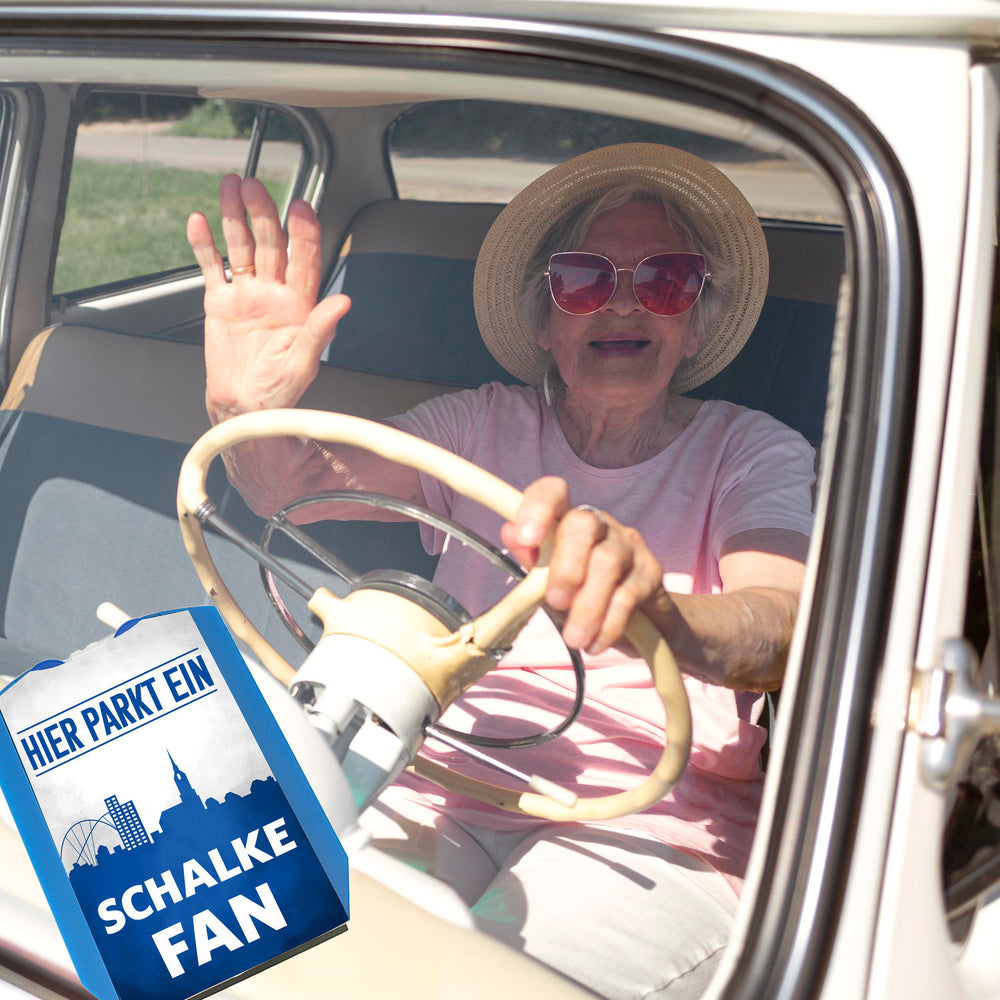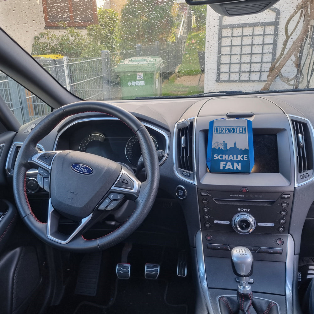 Hier parkt ein Schalke Fan Parkscheibe in Vereinsfarben ist auf Lager und wird versandt, sobald es wieder verfügbar ist