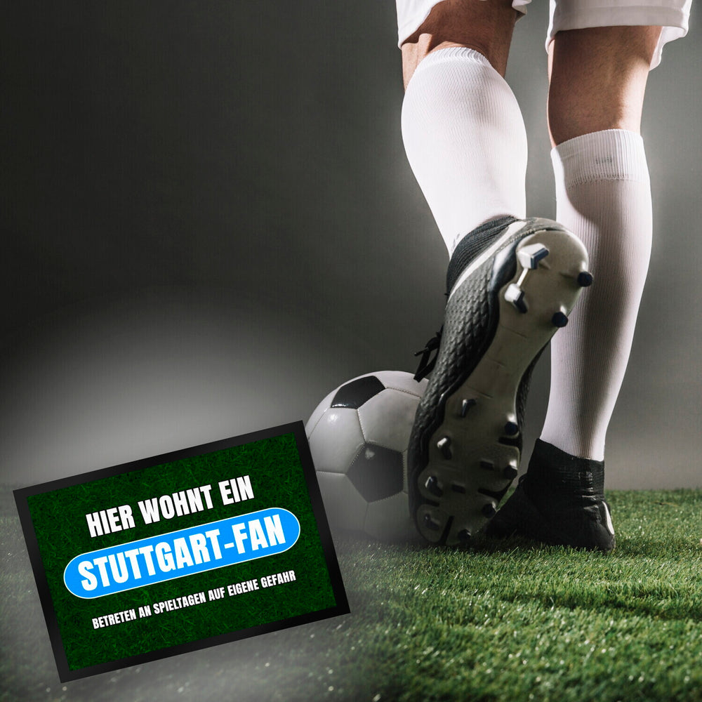 Hier wohnt ein Stuttgart-Fan Fußmatte in 35x50 cm mit Rasenmotiv