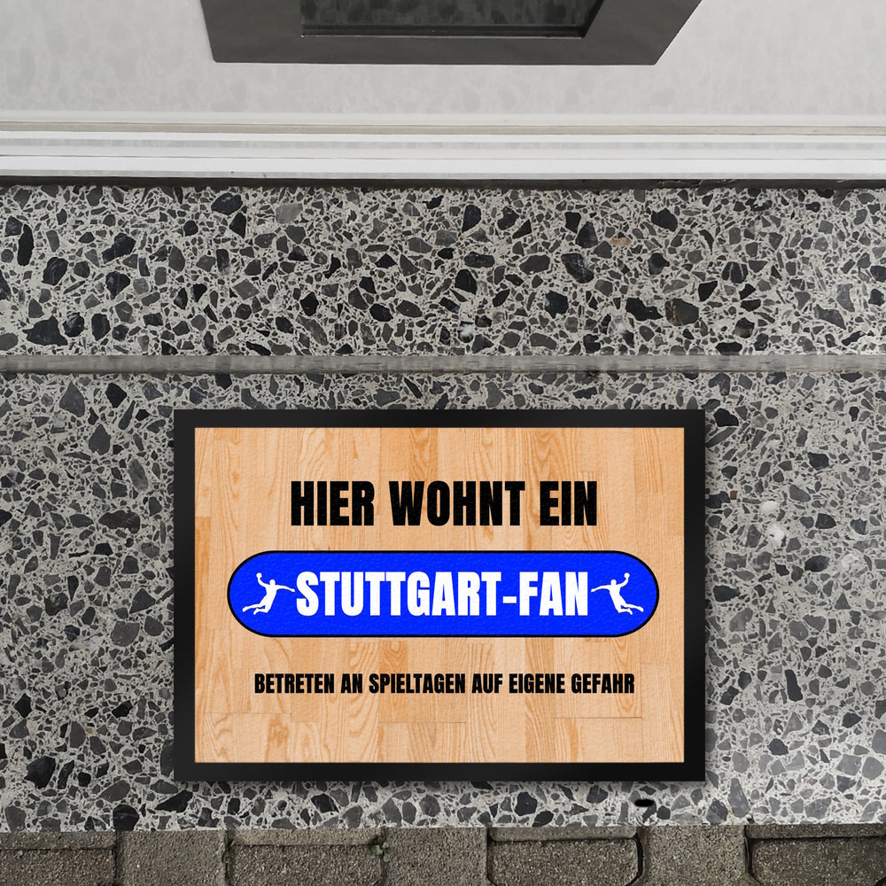 Hier wohnt ein Stuttgart-Fan Fußmatte in 35x50 cm mit Turnhallenboden Motiv