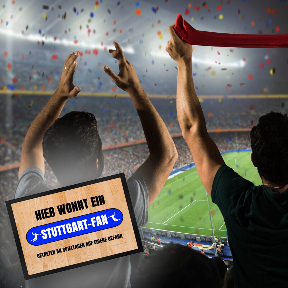 • 1x Hier wohnt ein Stuttgart-Fan Fußmatte in 35x50 cm mit Turnhallenboden Motiv in der gewählten Größe