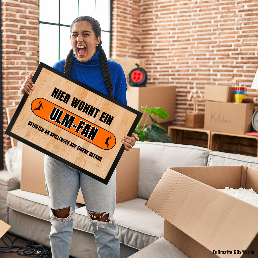 Hier wohnt ein Ulm-Fan Fußmatte in 35x50 cm mit Turnhallenboden Motiv