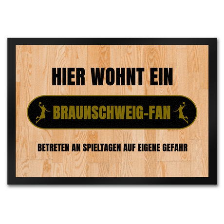 Hier wohnt ein Braunschweig-Fan Fußmatte in 35x50 cm mit Turnhallenboden Motiv