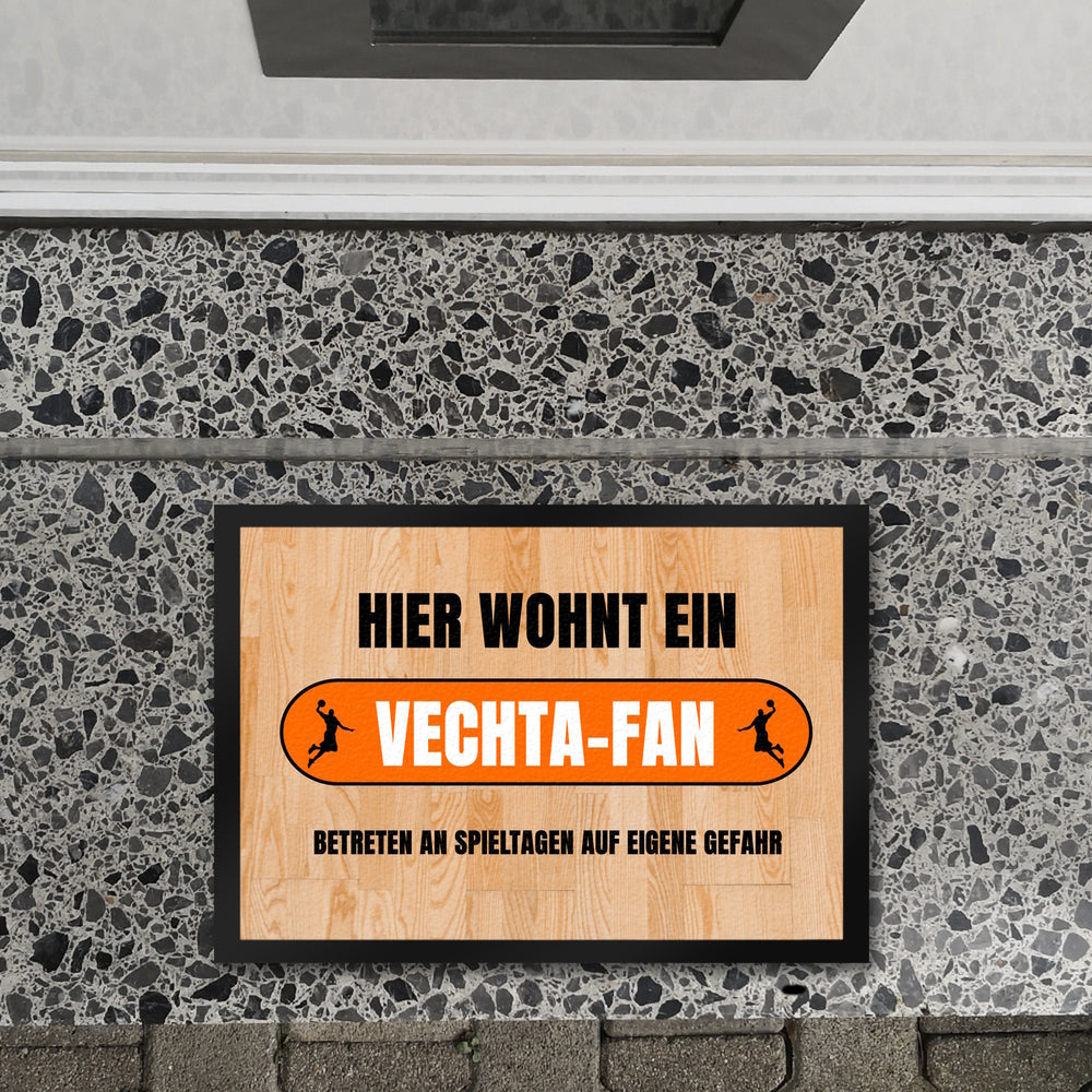 Hier wohnt ein Vechta-Fan Fußmatte in 35x50 cm mit Turnhallenboden Motiv