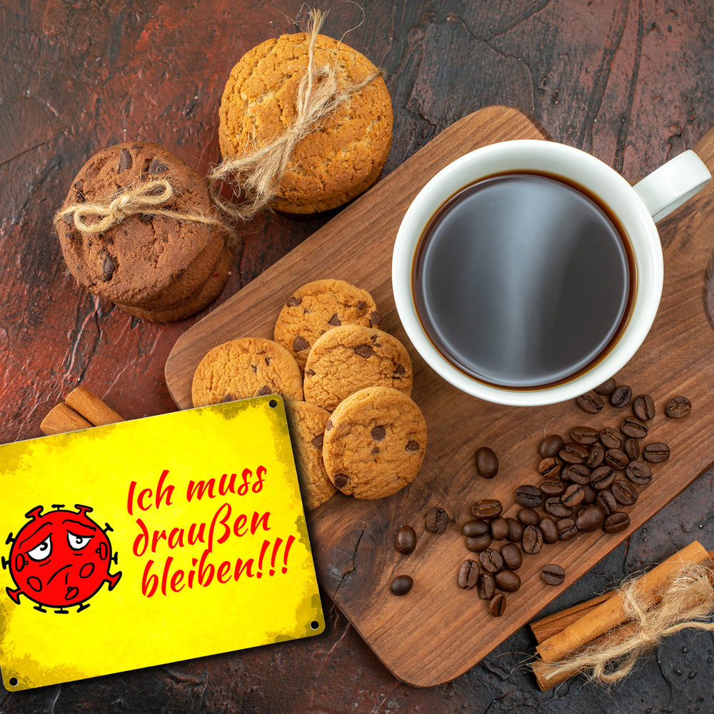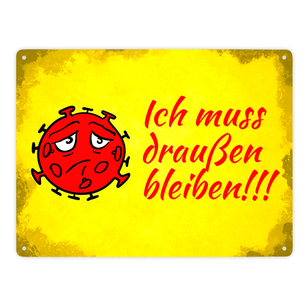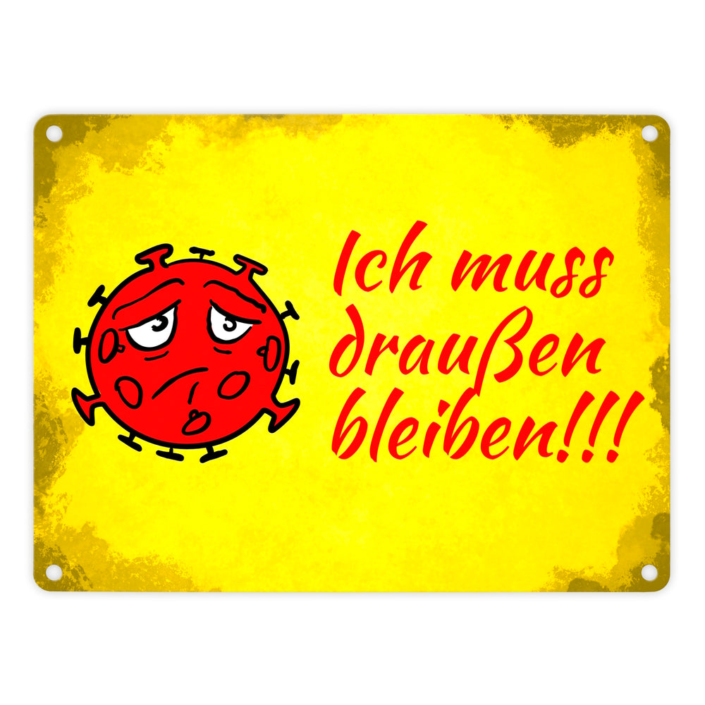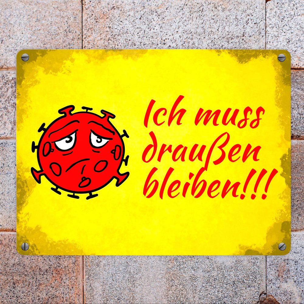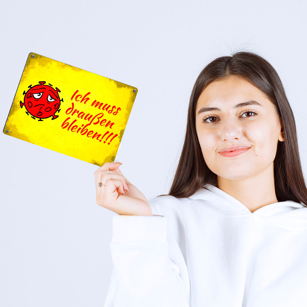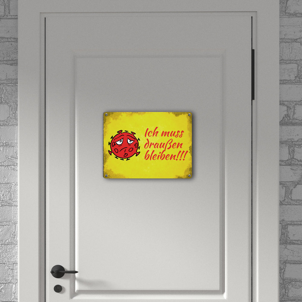 - 1x Ich muss draußen bleiben Metallschild mit Virus-Motiv in der gewählten Größe