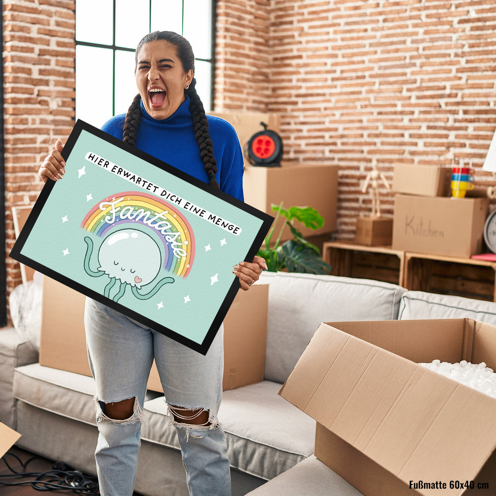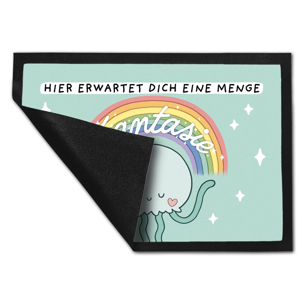Jelly & Friends Qualle Fußmatte in 35x50 cm ohne Rand mit Spruch Hier erwartet dich eine Menge Fantasie