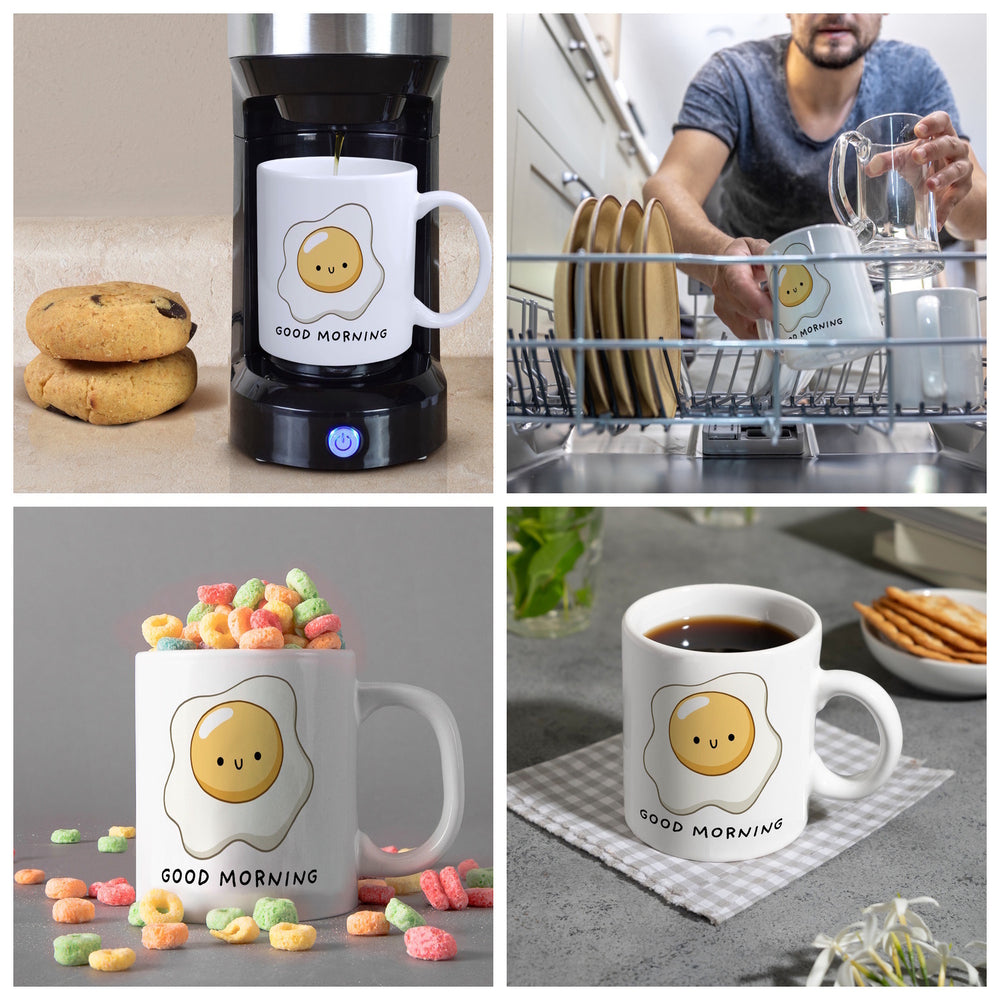 • 1x Jelly & Friends Spiegelei Kaffeebecher mit Spruch Good Morning in der gewählten Ausführung