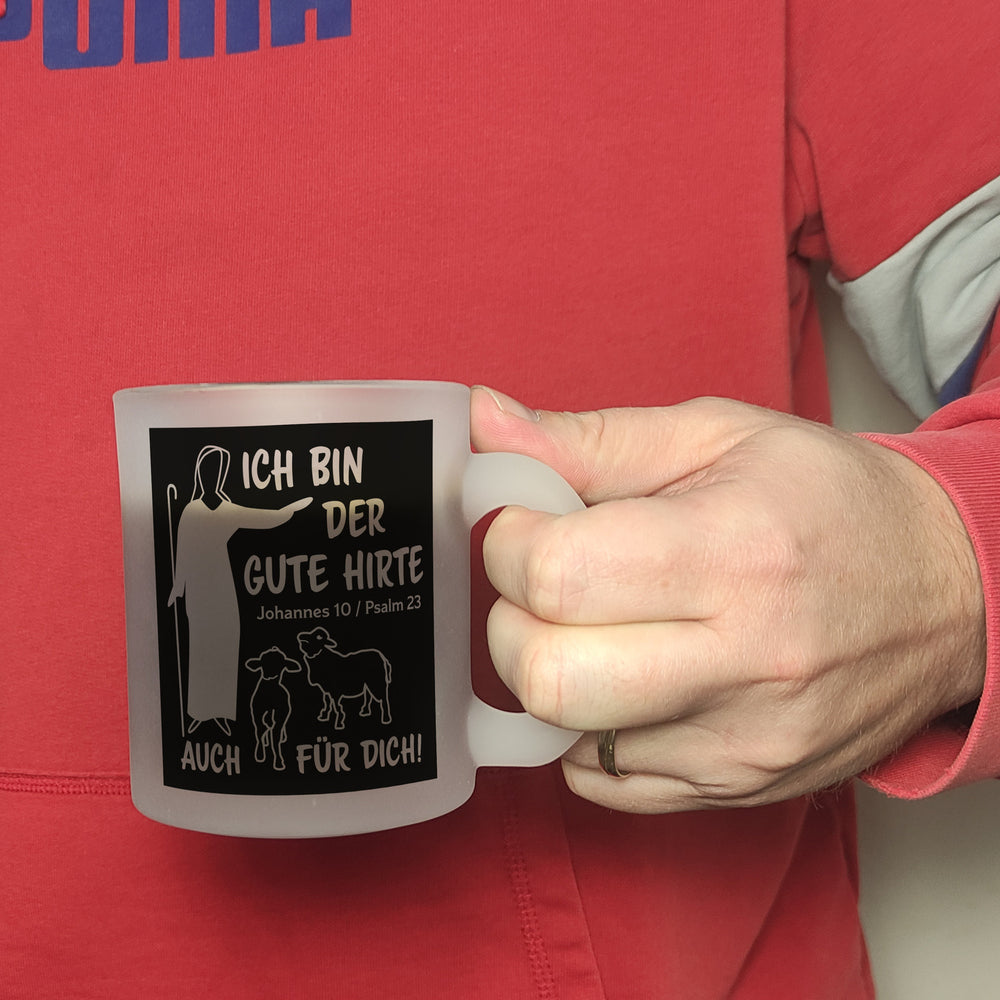 • 1x Johannes 10 Psalm 23 Kaffeebecher mit Spruch Ich bin der gute Hirte auch für dich in der gewählten Ausführung