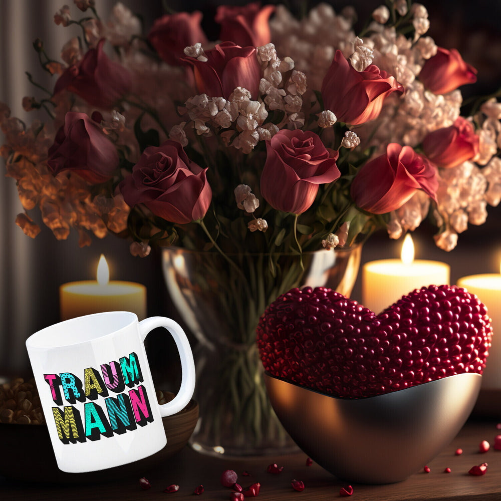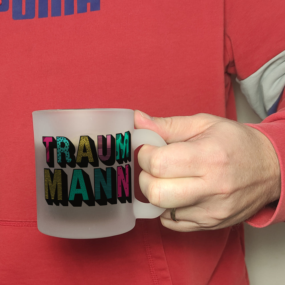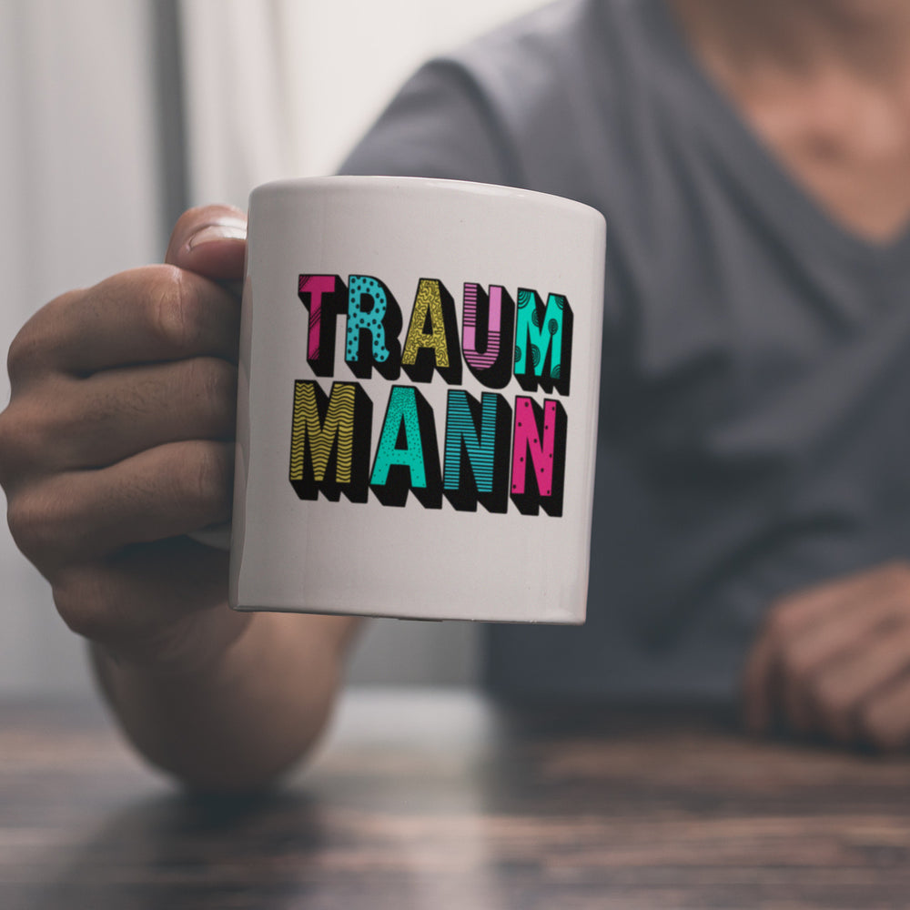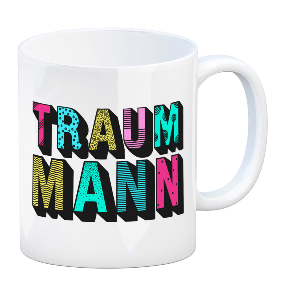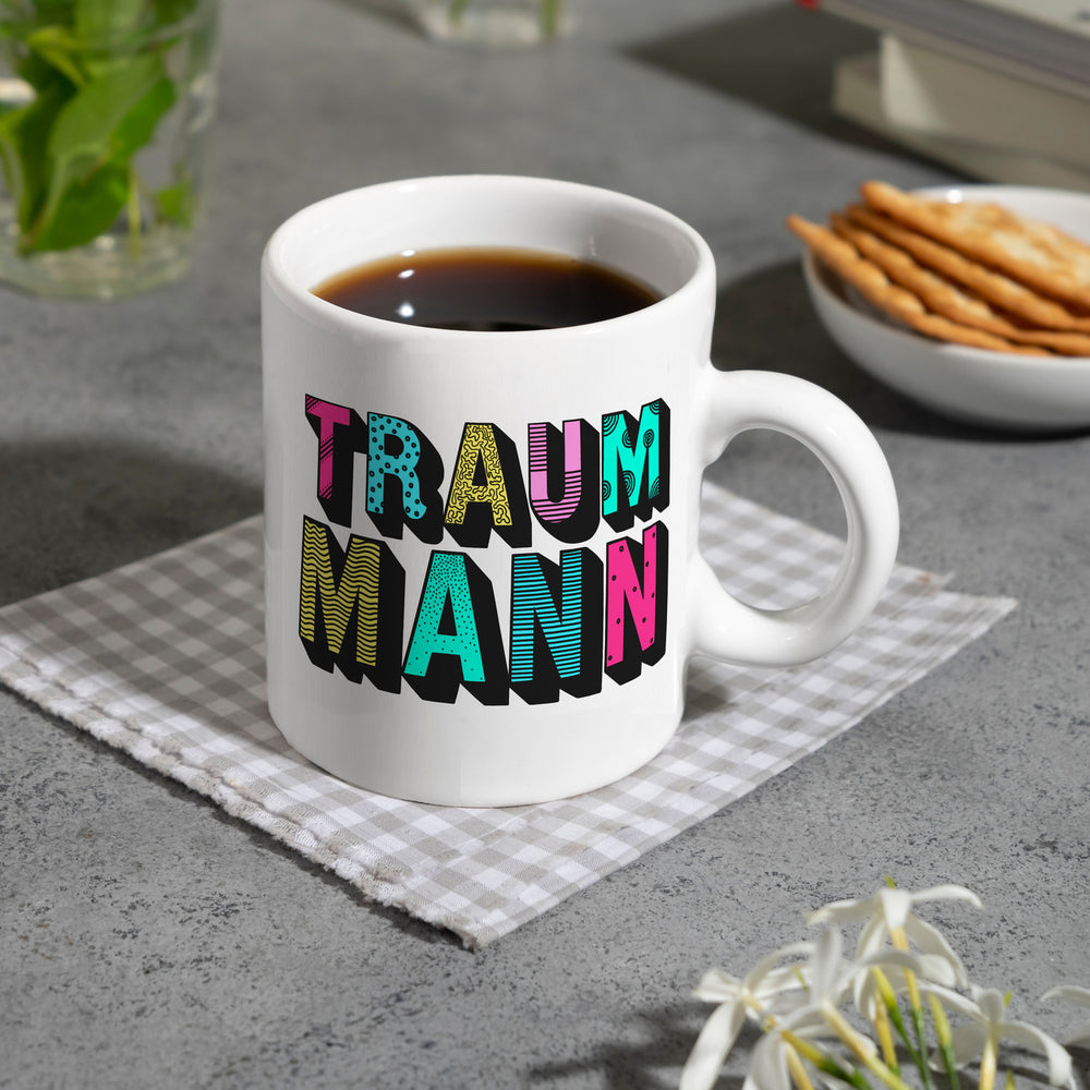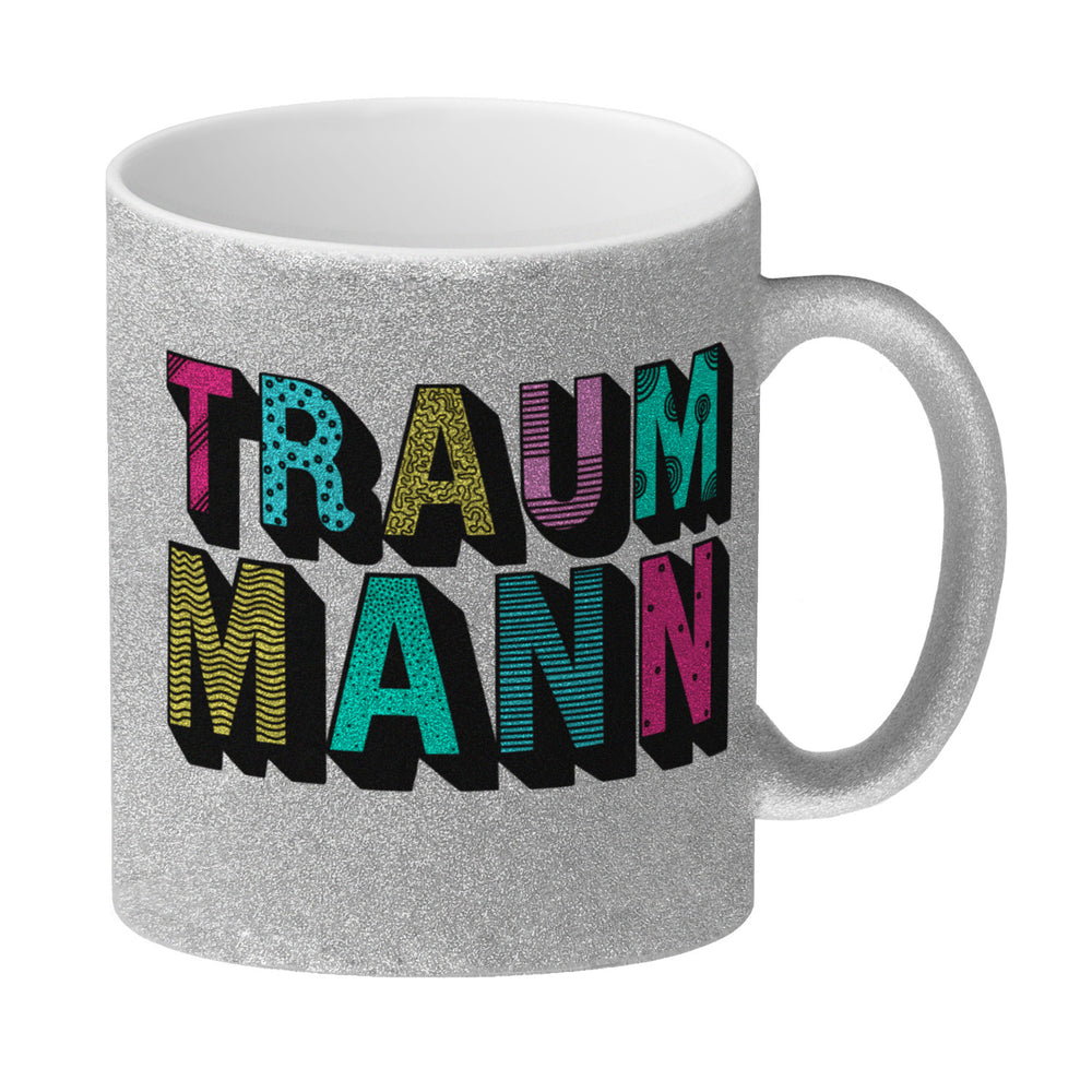 Der Kaffeebecher mit Spruch: Traummann ist das perfekte Geschenk für jeden Traummann. Erhältlich in verschiedenen Varianten, von der weißen Standardtasse bis zur exklusiven Silberedition mit Glitzereffekt. Jede Tasse wird mit Sorgfalt in unserer Manufaktur in Deutschland bedruckt und sticht durch ihre großen, bunten Buchstaben ins Auge. Der Kaffeebecher mit Spruch: Traummann ist ein originelles Geschenk und eine tolle Erinnerung an die große Liebe. Mit dieser Tasse kann jeder Traummann seinen Kaffee oder Tee genießen und sich über ein besonderes Geschenk freuen. Egal ob zum Geburtstag, zu Weihnachten oder als kleines Dankeschön für den Alltag - der Kaffeebecher mit Spruch: Traummann ist immer eine gute Wahl!