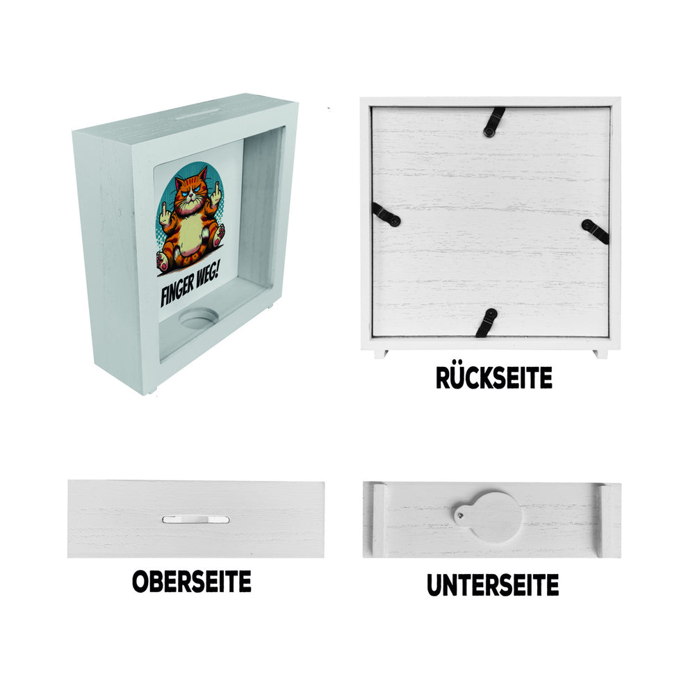 Katze Mittelfinger Spardose mit Spruch Finger weg!
