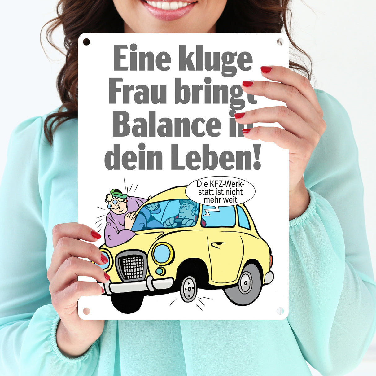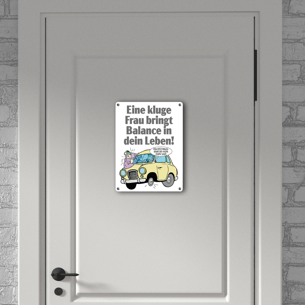- 1x Kluge Frau bringt Lebensbalance Metallschild in 15x20 cm in der gewählten Größe