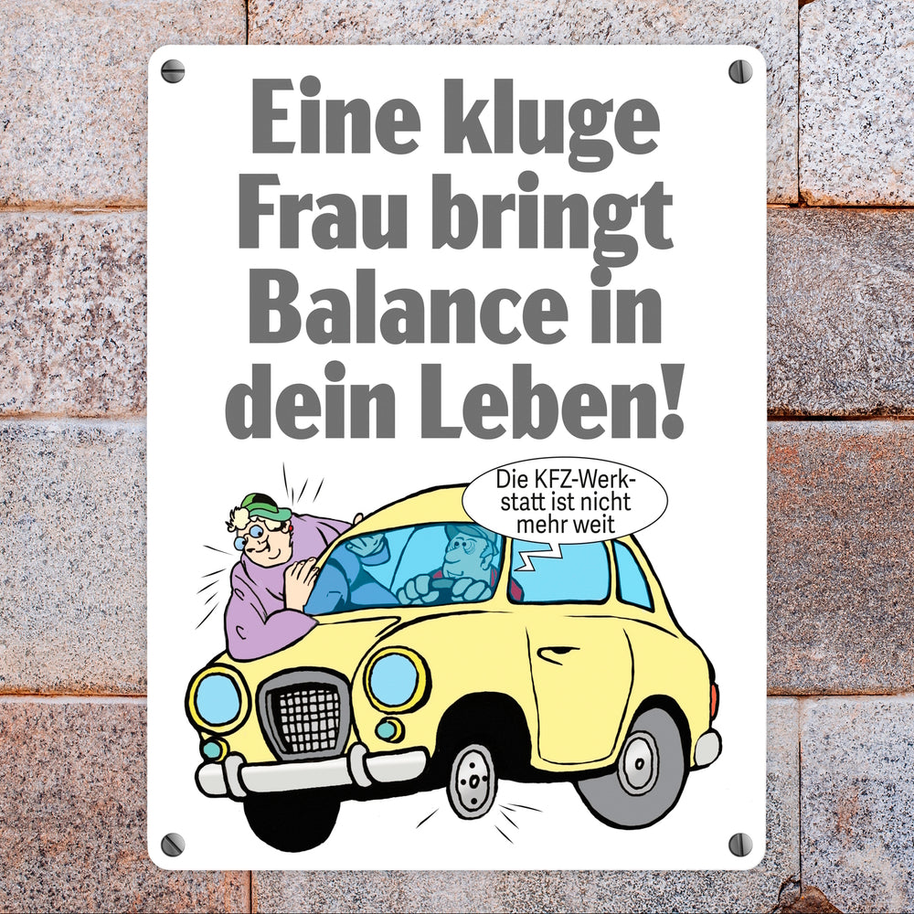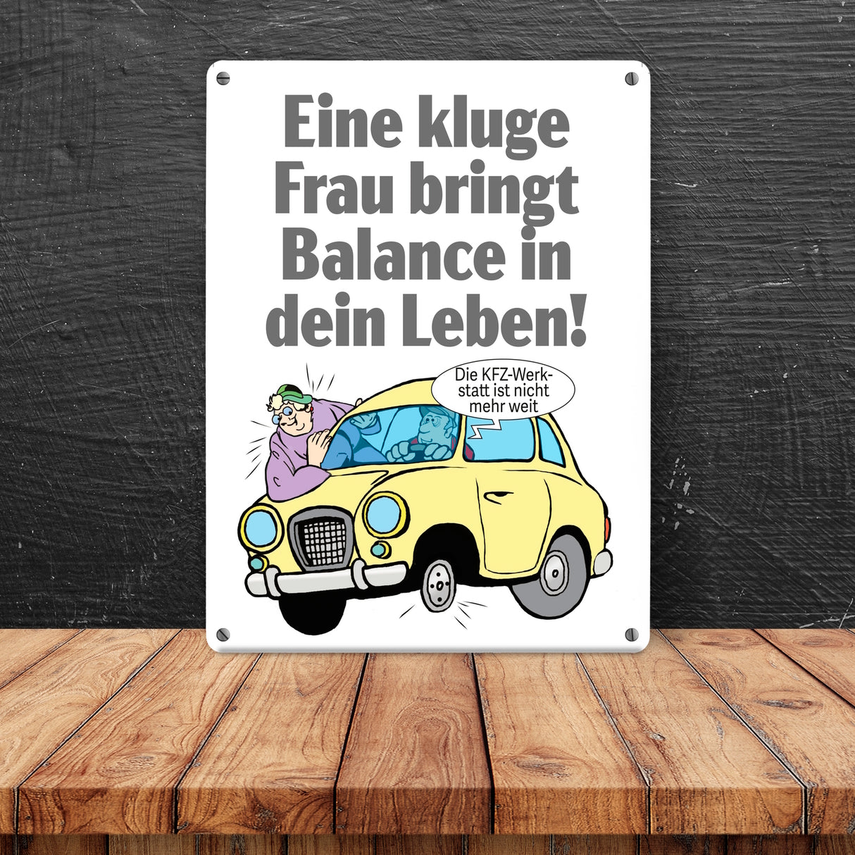 - Schenke Freude mit diesem Metallschild, das Balance in den Fokus rückt. Ob in der Küche, im Büro oder in der Garage – es sorgt für Lacher und gute Laune. Ein ideales Geschenk für Mädchen, die wissen, dass kluge Frauen in jeder Lebenslage das Gleichgewicht behalten, selbst bei einem Besuch in der KFZ-Werkstatt!