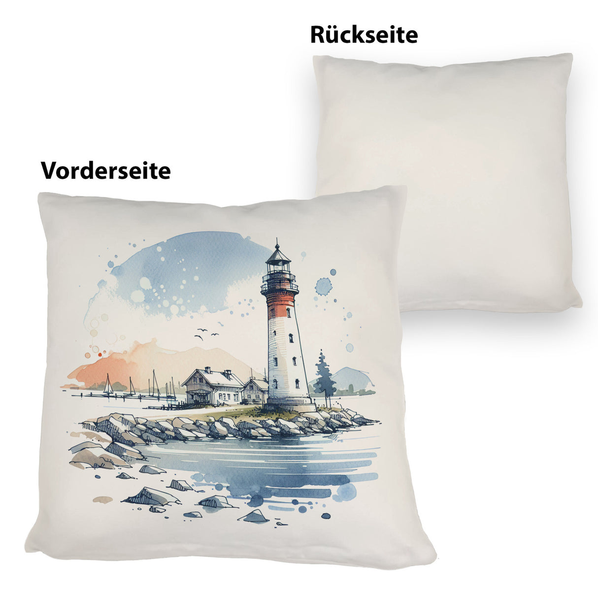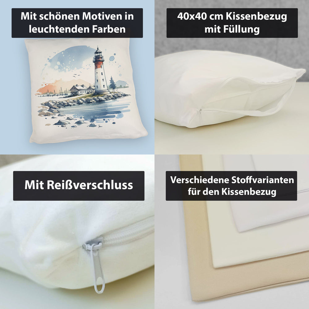 • 1x Leuchtturm mit Häuser im Hintergrund Kissen in der gewählten Ausführung