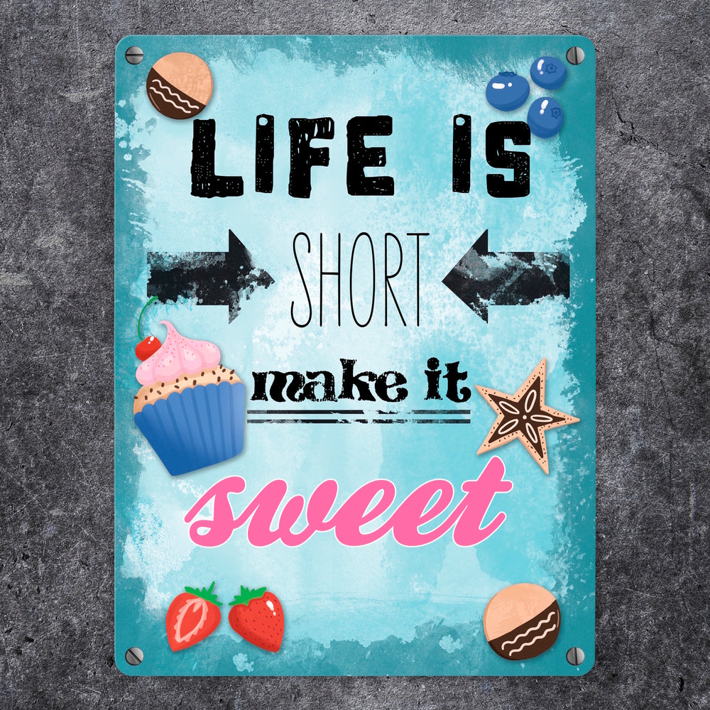 - 1x Life is short make it sweet dekoratives Metallschild in der gewählten Größe