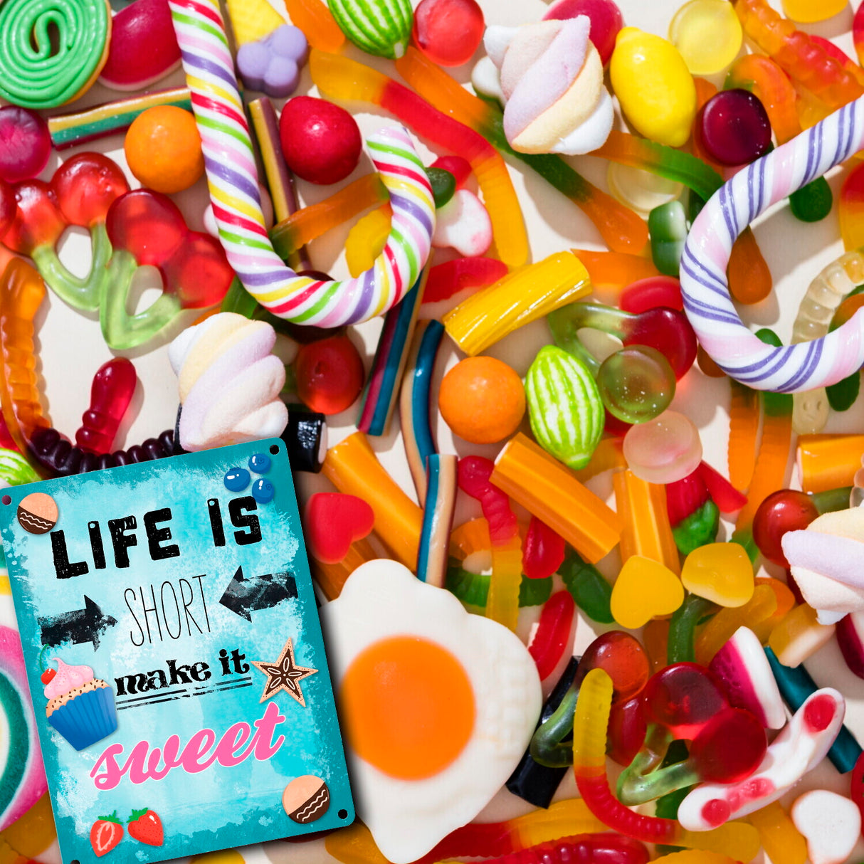 - Wenn du auf der Suche nach einem speziellen dekorativen Metallschild bist, mit dem du deine Liebe für Süßigkeiten ausdrücken kannst, dann ist dieses Schild wie für dich gemacht.
