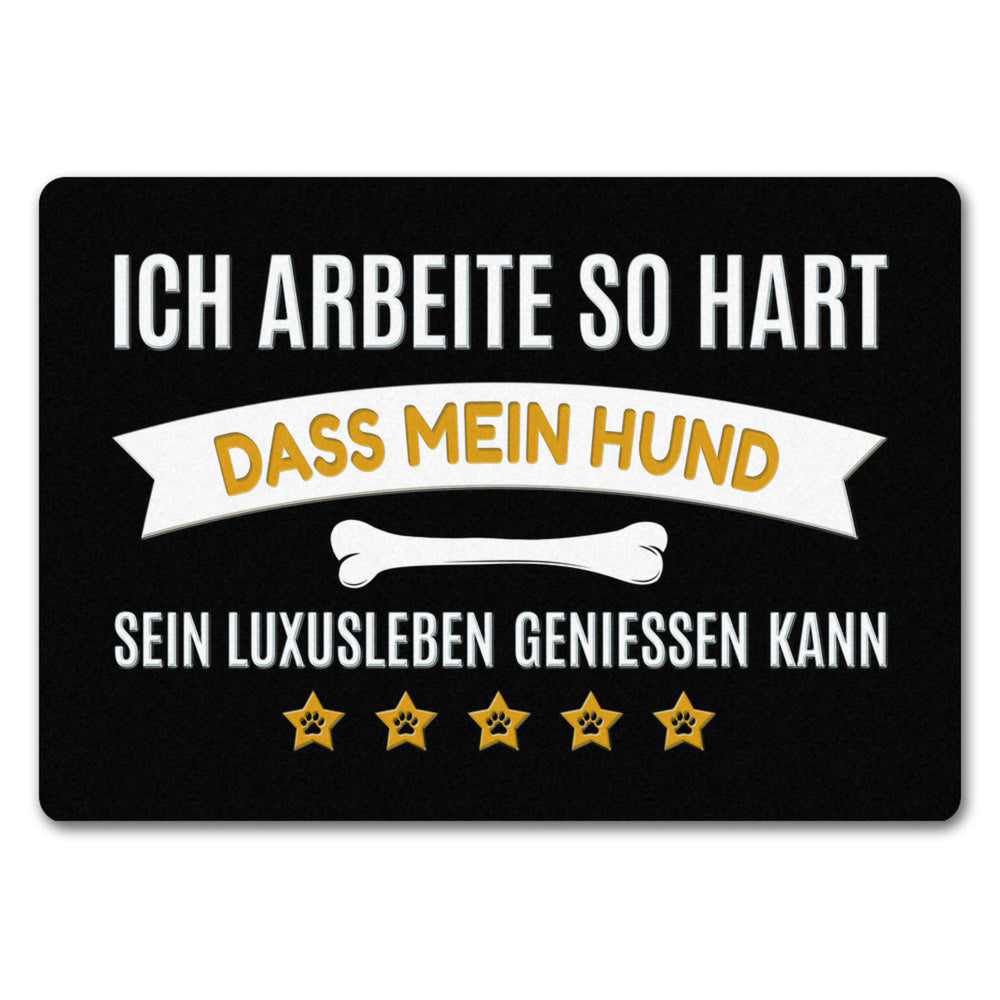 Hund Fußmatte in 35x50 cm mit Spruch Her mit dem schönen Leben