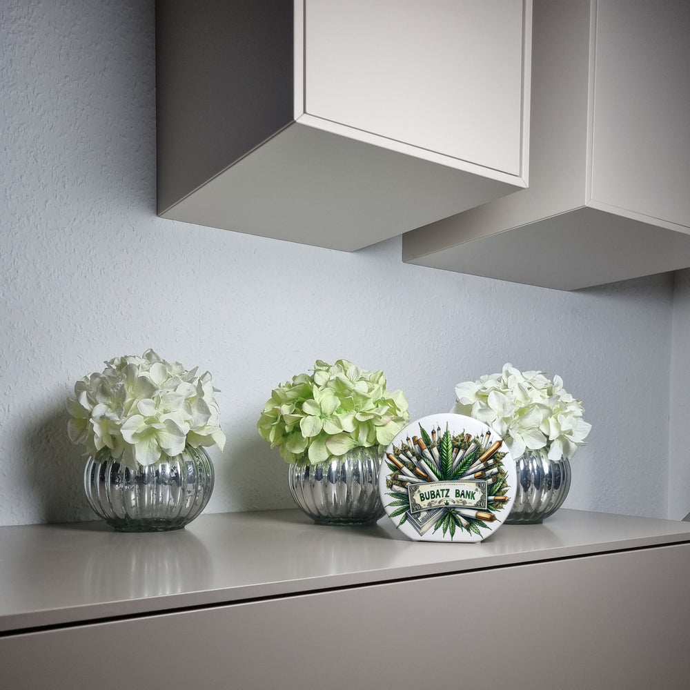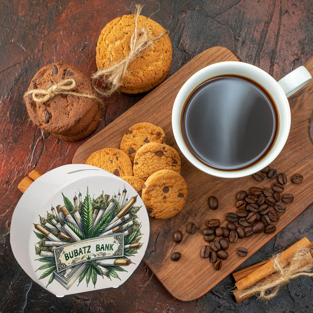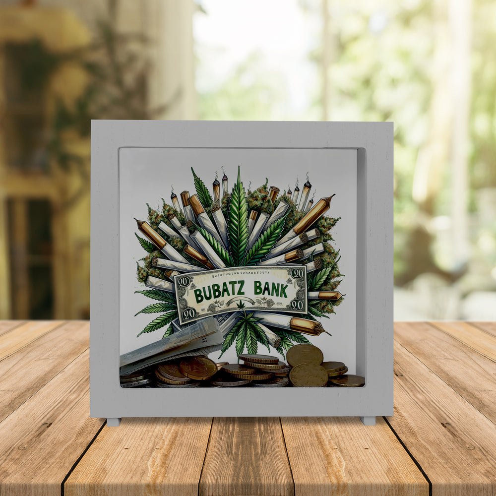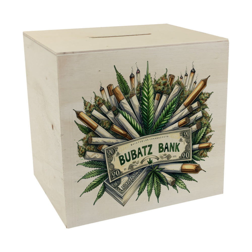 - Stell dir vor, du sparst dein Geld in einer "Bubatz Bank"! Diese grüne Spardose ist perfekt für jeden, der seine Leidenschaft für Cannabis auf witzige Weise zeigen will.
