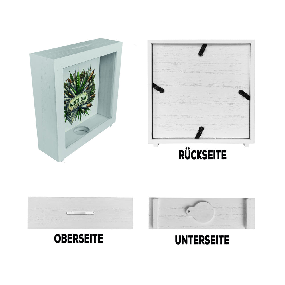 - 1x Marihuana Kiffer Spardose mit Spruch Bubatz Bank in der gewählten Ausführung