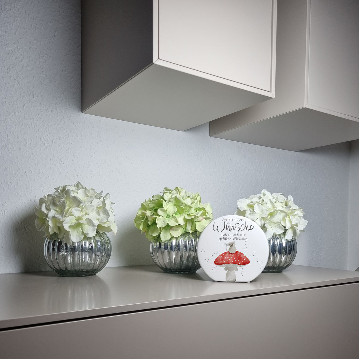 Maus auf Fliegenpilz Blumentopf mit Spruch Kleinste Wünsche größte Wirkung
