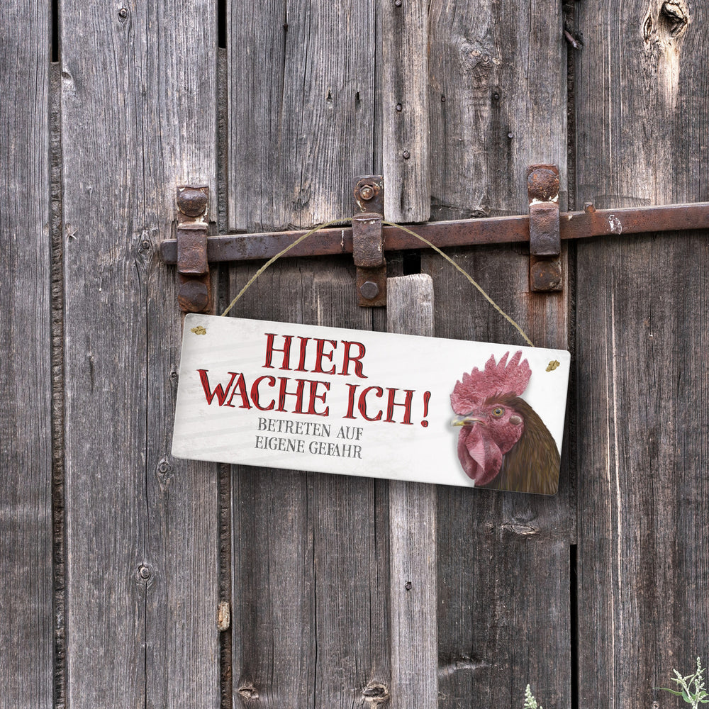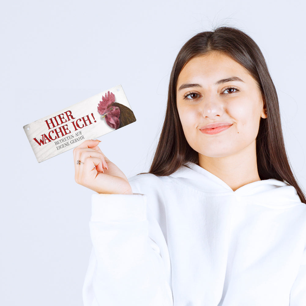 Huhn mit Eiern Metallschild in 15x20 cm mit Spruch Hier wache ich! Betreten auf eigene Gefahr
