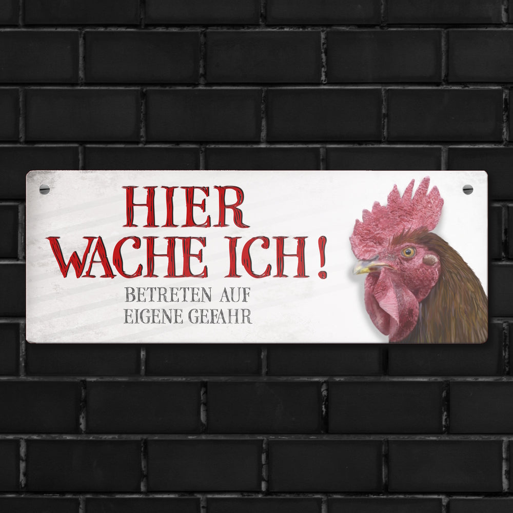 Metallschild mit Hahn Motiv und Spruch: Betreten auf eigene Gefahr ... - 7,5x20 cm ist auf Lager und wird versandt, sobald es wieder verfügbar ist