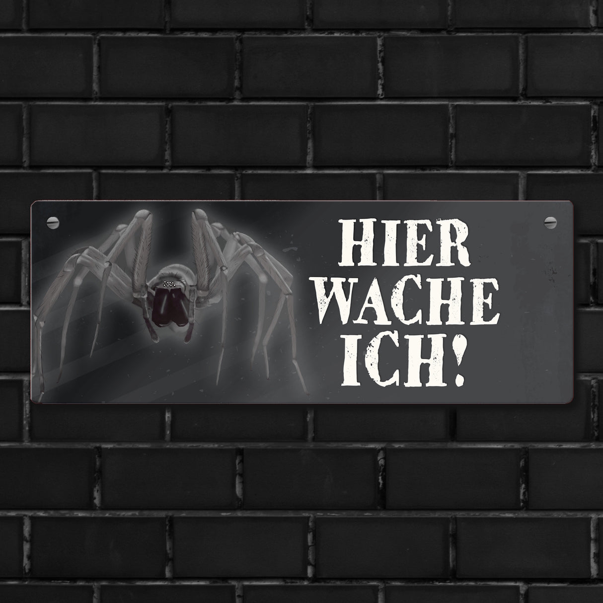 • Lieferumfang: 1x Metallschild mit Spinne Motiv und Spruch: Hier wache ich!