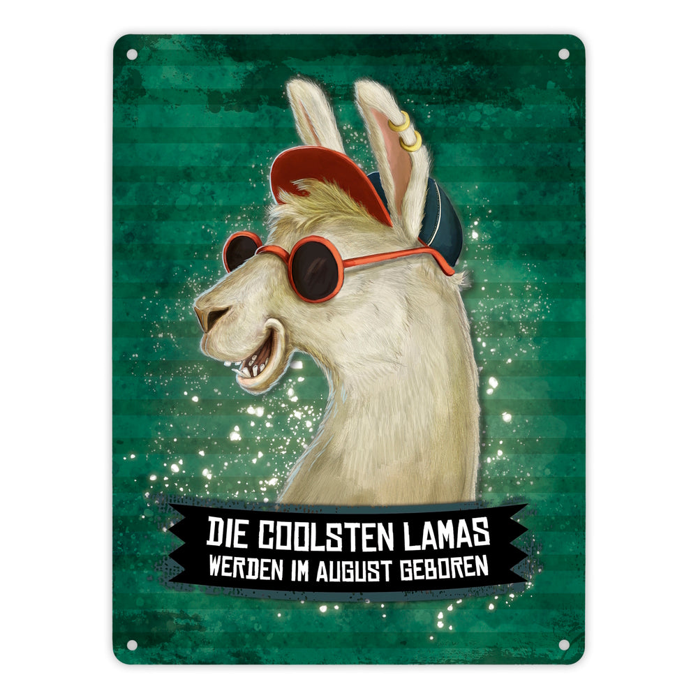 - 1x Metallschild mit Spruch: Die coolsten Lamas werden im August geboren in der gewählten Größe