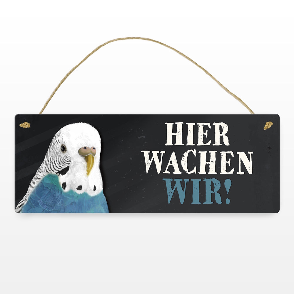 - Lieferumfang: 1x Metallschild mit Wellensittich blau Motiv und Spruch: Hier wachen wir!