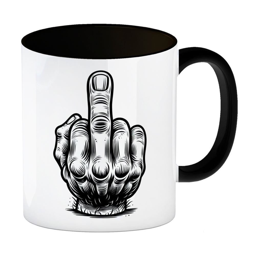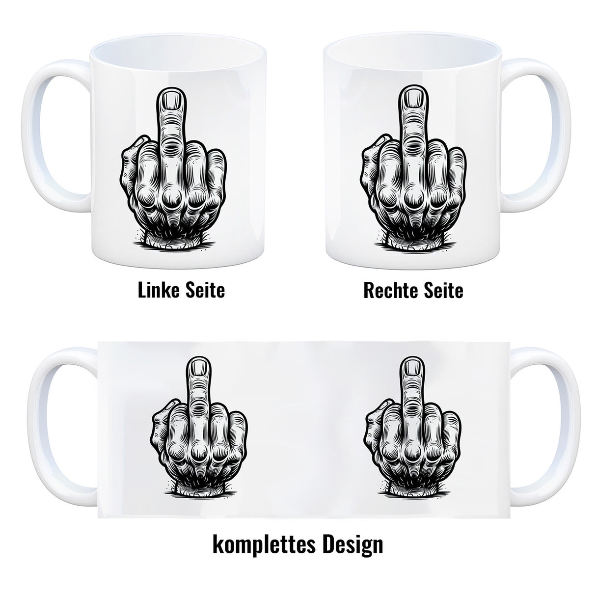 • 1x Mittelfinger Comic Kaffeebecher in der gewählten Ausführung