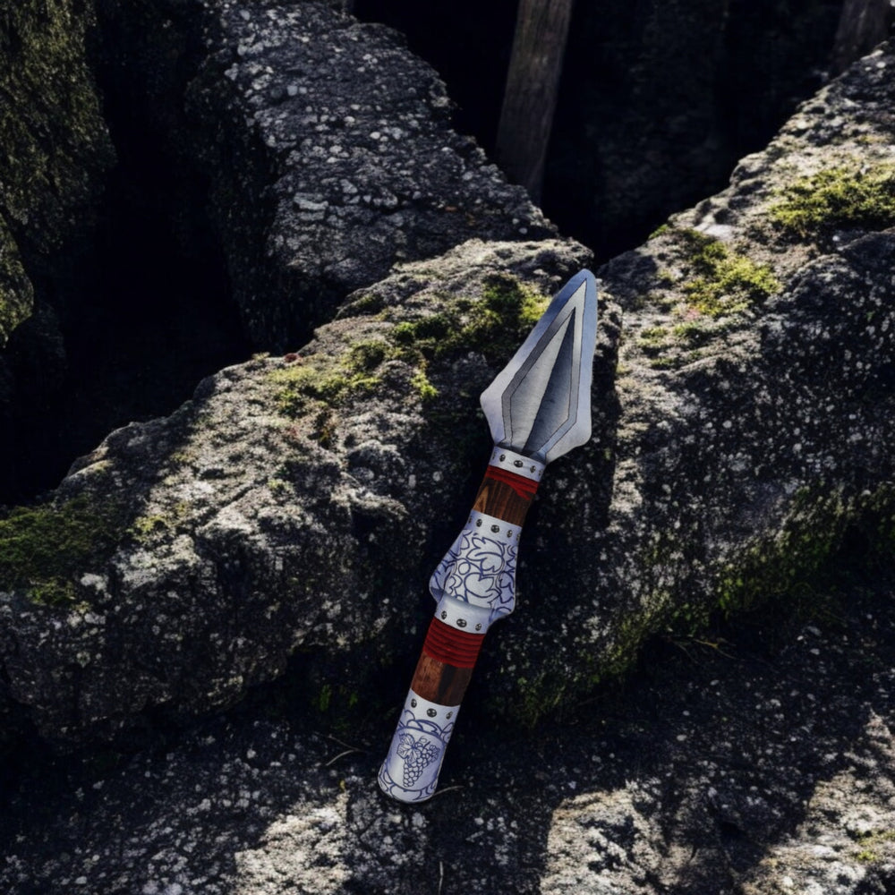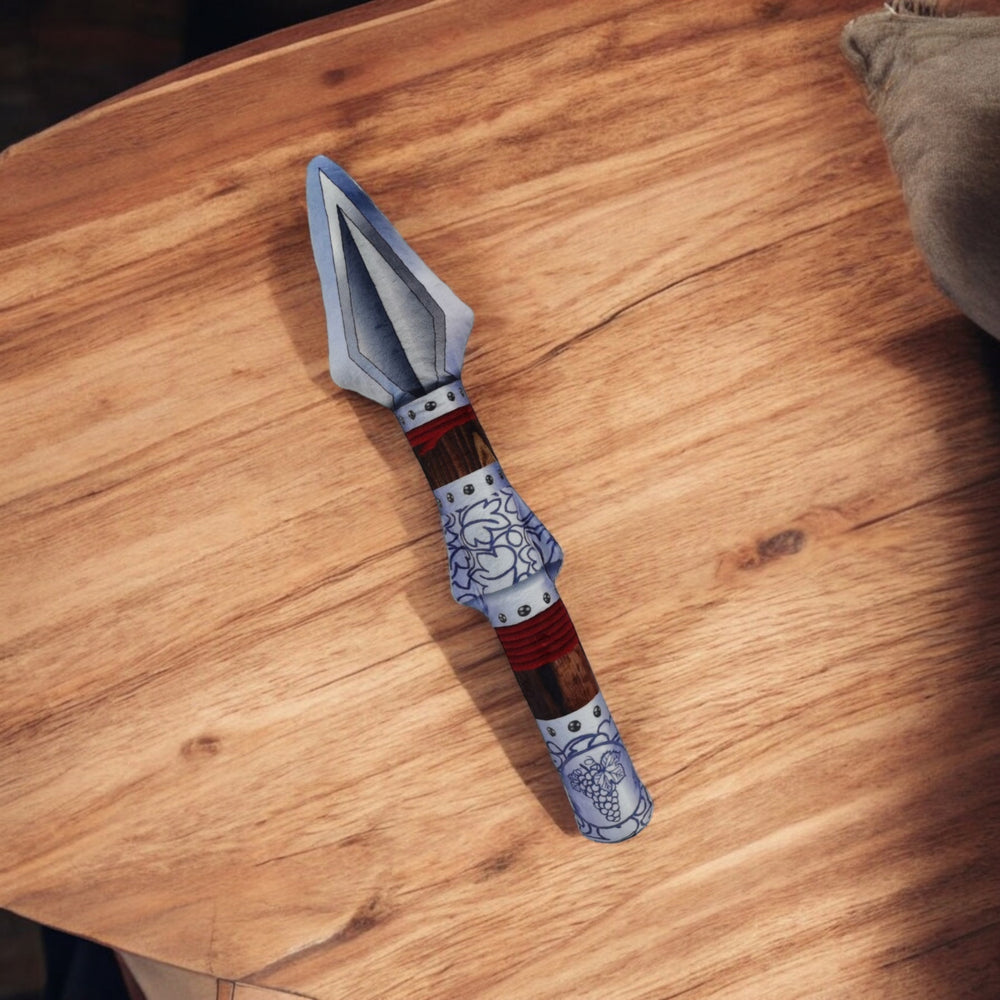 • Das Design dieses Kissens ist einzigartig: geformt wie ein römisches Pilum, mit silberblauer Spitze und kunstvollen Verzierungen. Schräge Holz- und Stoffelemente machen das Kissen zu einem Hingucker in jeder Schlacht oder Deko. Perfekt für Kostüm, Cosplay und Dekoration!