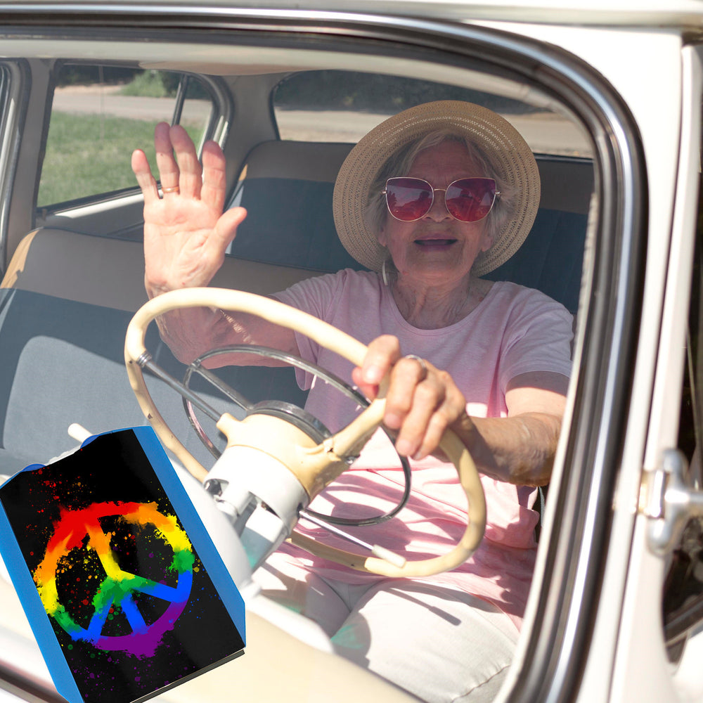 Regenbogen Parkscheibe mit Peace-Zeichen und 2 Einkaufswagenchips ist auf Lager und wird versandt, sobald es wieder verfügbar ist