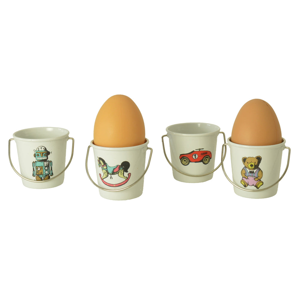 Retro Spielzeug Eimer Eierbecher im 4er Set
