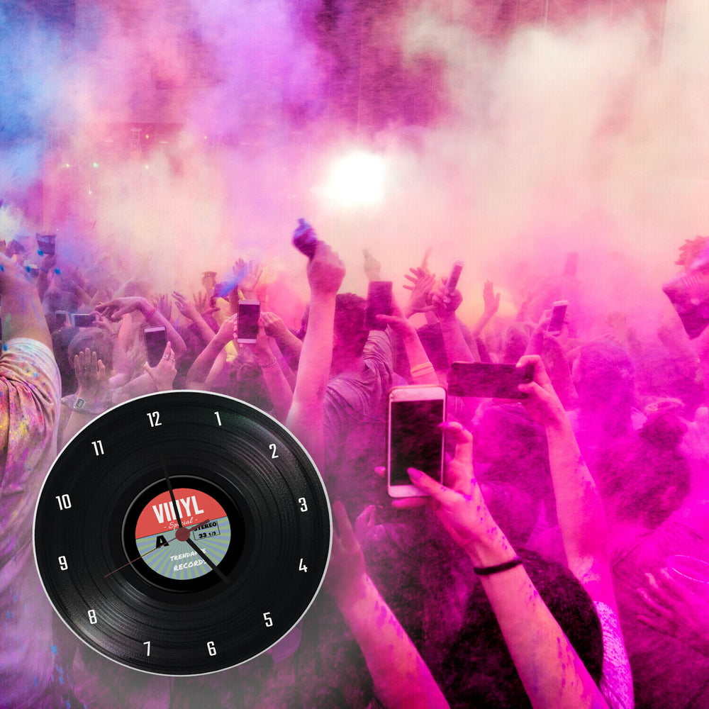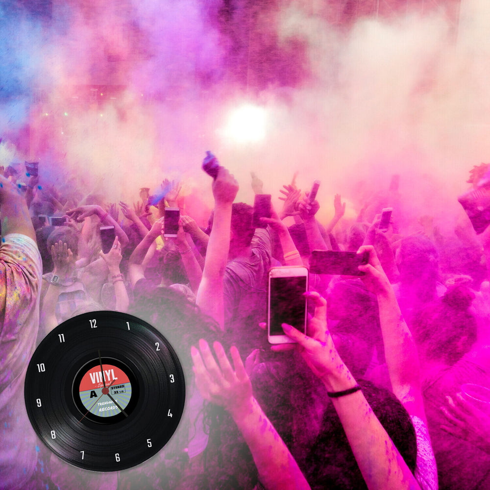 • Kann deine Wand Vinyl? Unsere Wanduhr kann's! Schmücke deine Wand mit dem Besten aus beiden Welten – zeitlosem Design und zeitgemäßer Funktionalität. Farbenfroh und kreisförmig, diese Schallplatte verpasst deinem Zuhause den Rhythmus der Nadel auf dem Tonträger, während die Zeiger der Uhr sanft über das bunte Label gleiten. Schlag zu, bevor die Zeit davonrockt!