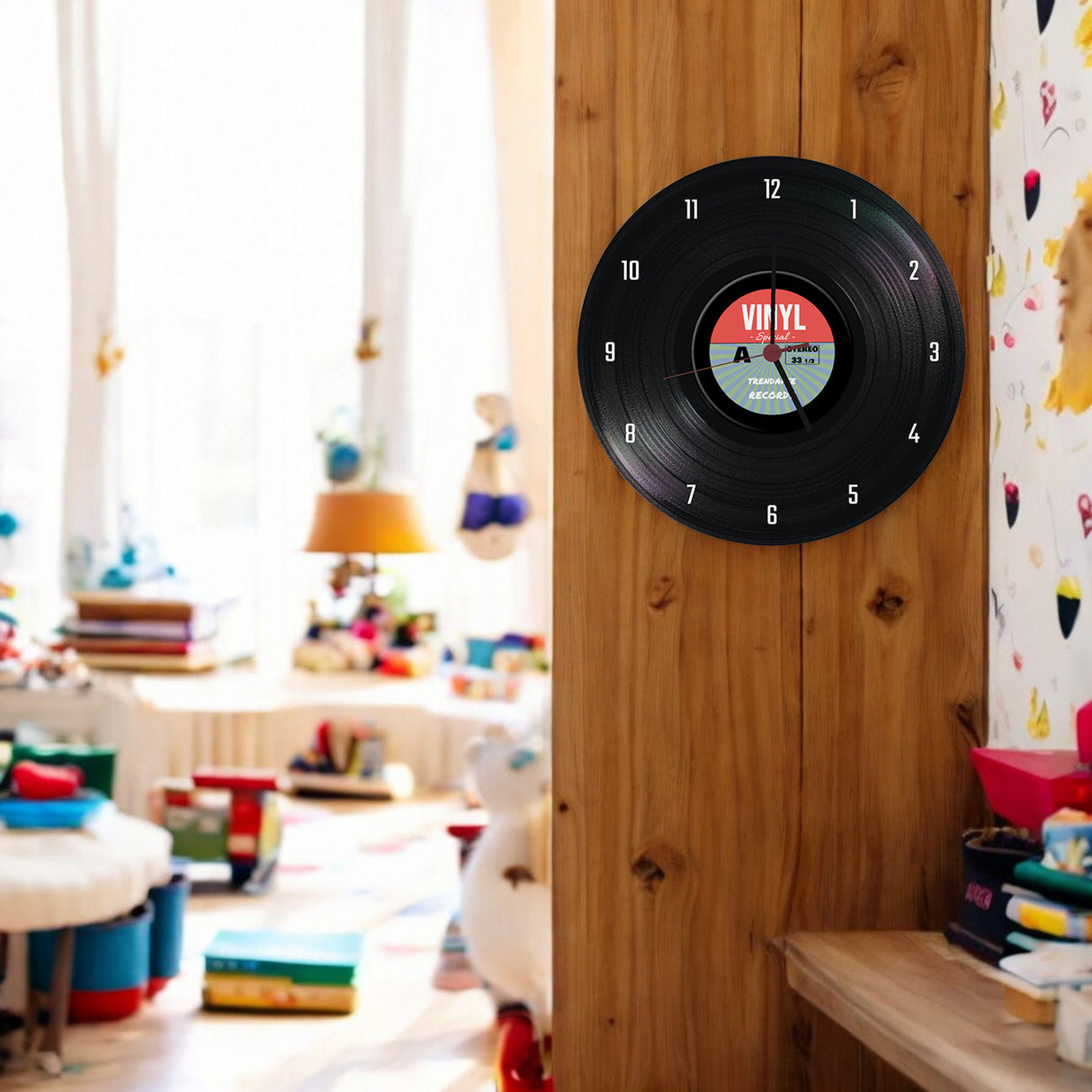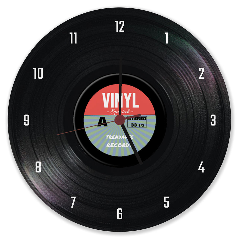 Kann deine Wand Vinyl? Unsere Wanduhr kann’s! Schmücke deine Wand mit dem Besten aus beiden Welten – zeitlosem Design und zeitgemäßer Funktionalität. Farbenfroh und kreisförmig, diese Schallplatte verpasst deinem Zuhause den Rhythmus der Nadel auf dem Tonträger, während die Zeiger der Uhr sanft über das bunte Label gleiten. Schlag zu, bevor die Zeit davonrockt!Im Rhythmus der Zeit – so könnte man die Retro Vinyl Special Schallplatten Wanduhr wohl nennen. Du bist auf der Suche nach etwas Außergewöhnlichem für deine Wand, das nicht nur die Zeit misst, sondern auch deine Leidenschaft für Musik und Retro-Flair zum Ausdruck bringt? Hier ist sie: Die Uhr, die in keinem musikalischen Haushalt fehlen sollte! Diese Wanduhr ist DER Hingucker in jeder Wohnung. Sie kombiniert die klassische Ästhetik einer Vinyl-Langspielplatte mit der Funktionalität einer robusten Uhr. Egal, ob du das Ticktack eines Metronoms imitieren möchtest oder einfach nur zeigen willst, dass dein Sinn für Stil genauso zeitlos ist wie die großen Hits der 60er und 70er – diese Uhr passt zu jedem Beat.Auf der Suche nach dem perfekten Geschenk für den Vinyl-Liebhaber in deinem Leben? Oder vielleicht für jemanden, der schon alles hat, aber sicher noch Platz für eine Prise Nostalgie an der Wand? Die Retro Vinyl Special Schallplatte Wanduhr ist wie ein Konzertticket zurück in die goldene Ära der Musik – und gleichzeitig ein praktisches Geschenk, das jede Sekunde im Blick behält. Überrasche deine Liebsten mit dieser Melodie aus Farben und Zeiten, und beobachte, wie ihr Zimmer im Takt der guten alten Zeiten schwingt!