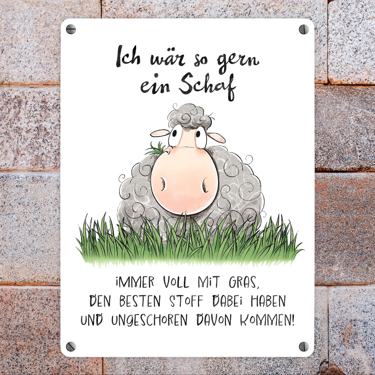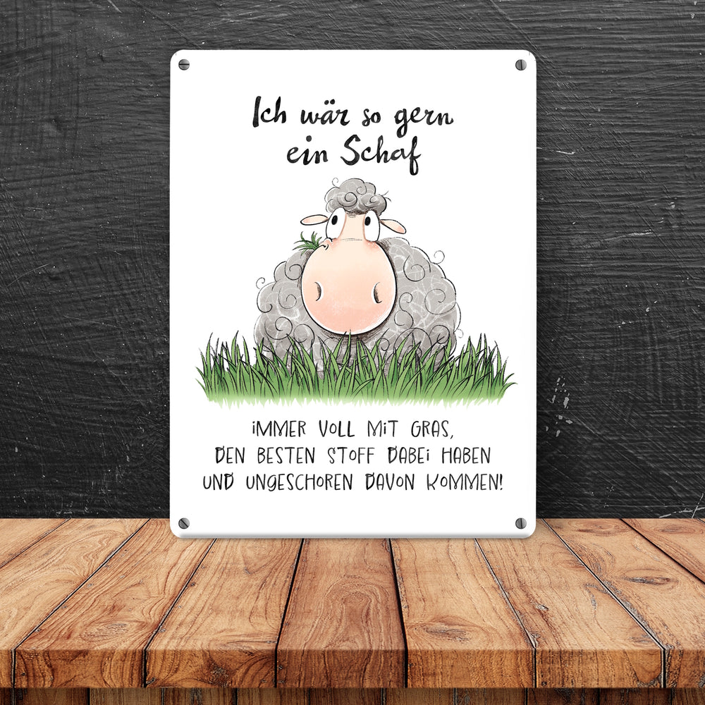 Schaf Metallschild in 15x20 cm mit Spruch ich wär so gern ein Schaf