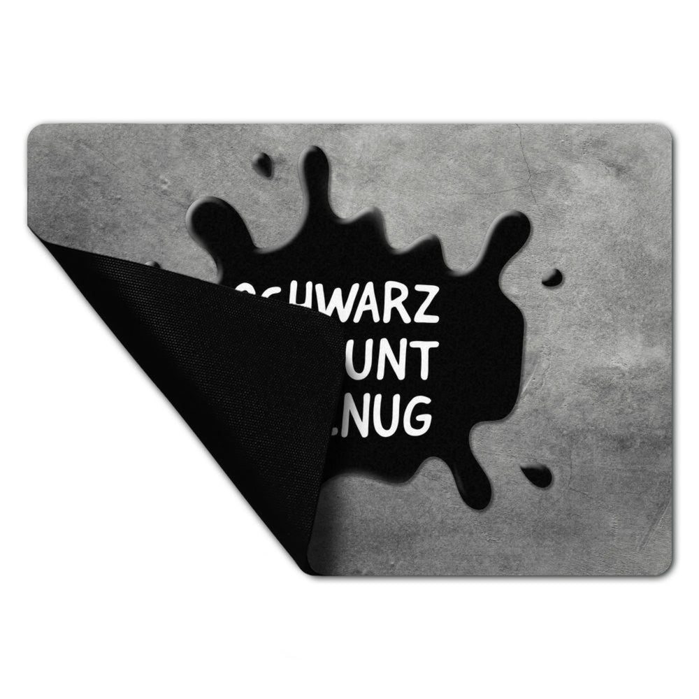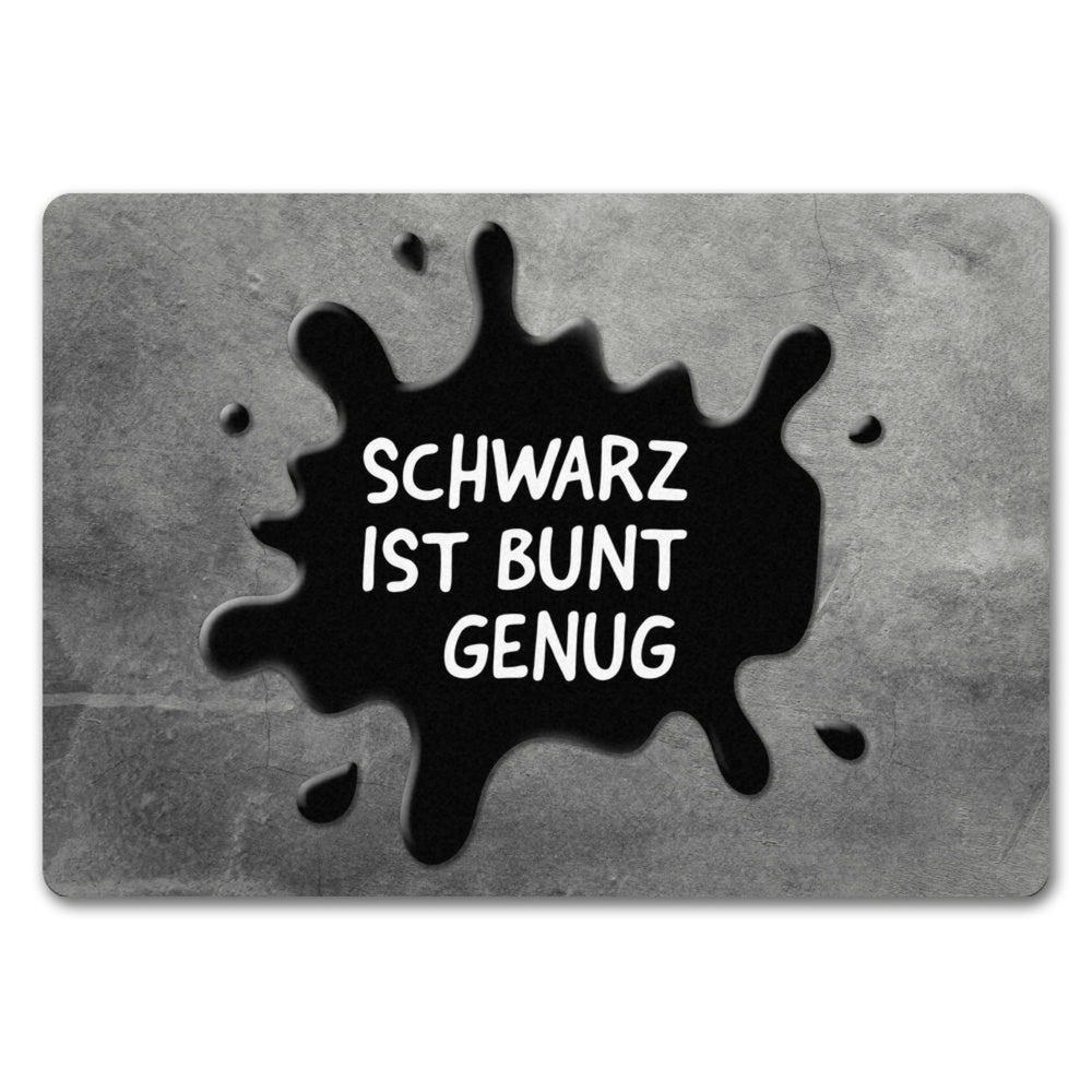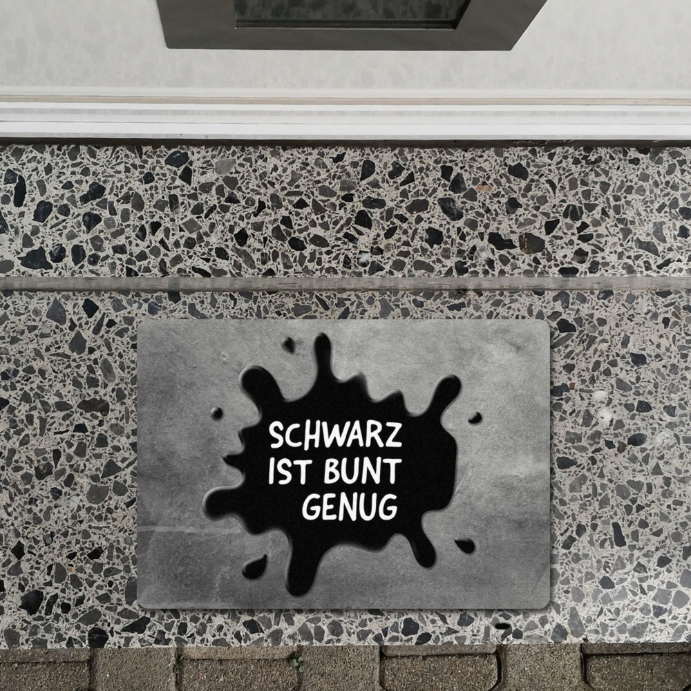 - Lieferumfang: 1x Schwarz ist bunt genug Fußmatte ohne Rand mit Farbklecks Motiv
