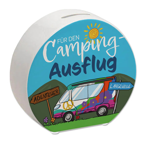 Spardose mit Campingmotiven in bunten Farben - Let the adventure begin